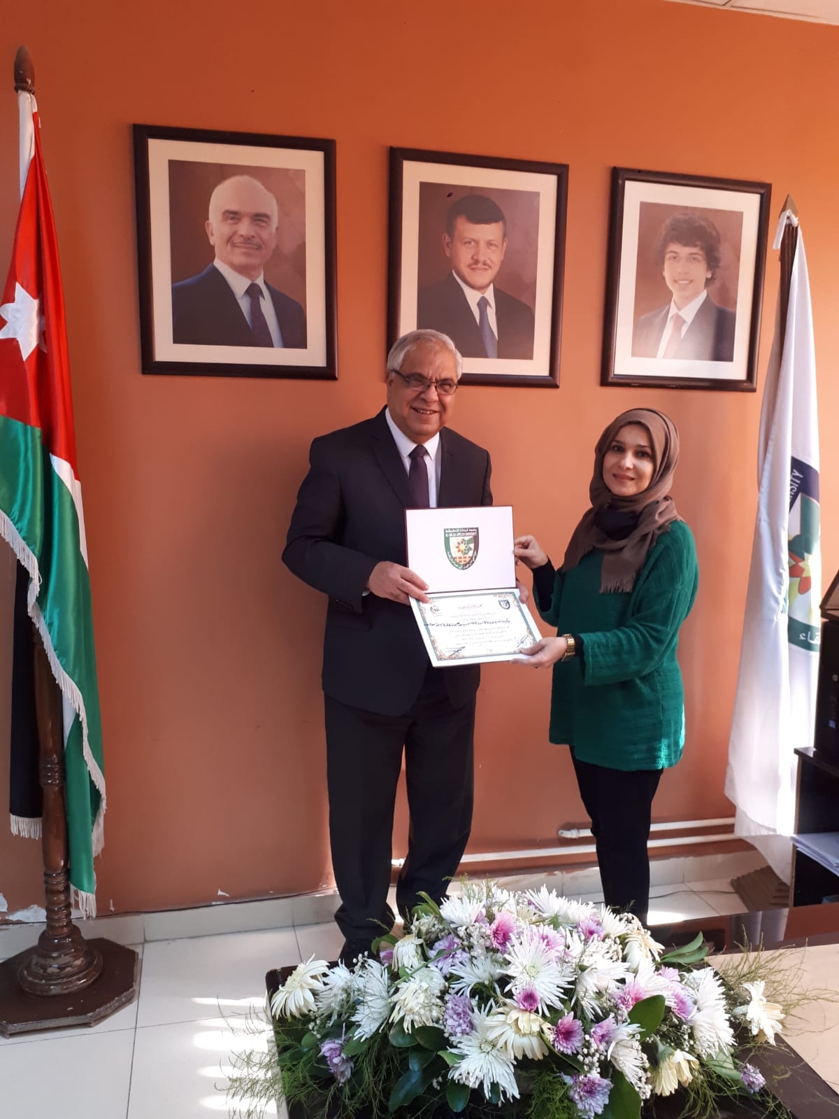 أ.د مصطفى محمد عيروط السيدة نسرين عبدالله عياش شهادة التقدير والموظف المثالي.
