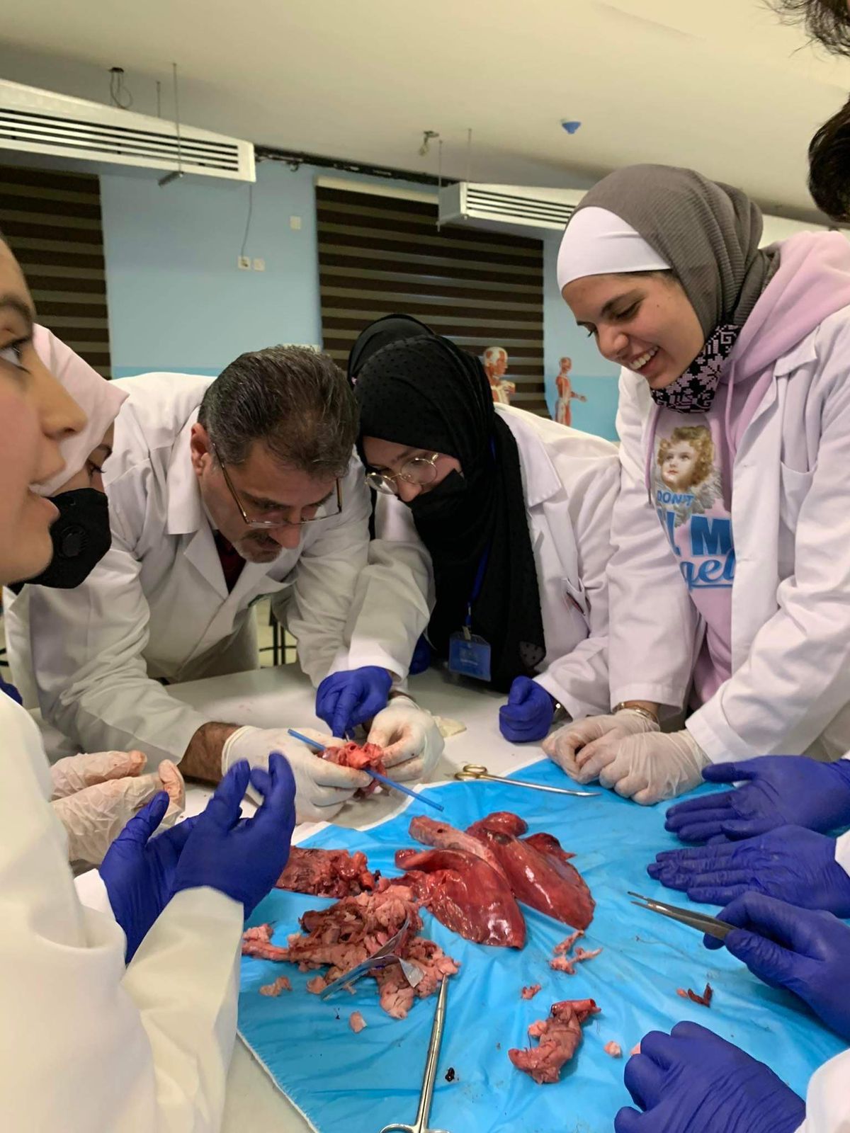 نائب رئيس الجامعة عميد كلية الطب الأستاذ الدكتور نضال يونس، اشار الى ان كلية الطب في جامعة البلقاء التطبيقية تضم العديد من المختبرات التعليمية والبحثية مزودة بأحدث المعدات العلمية والطبية وأجهزة المحاكاة السريرية لتسهيل التعلم والبحث مشيرا الى ان مختبرات التدريس هي المكان الذي يكتسب فيه الطلاب المعرفة العملية أثناء تعليمهم الطبي الأساسي أو السريري، وبين الدكتور يونس ان النشاط والذي نظمته الكلية وتحت اشراف الكادر التدريسي يهدف الى اكساب الطلبة ومن خلال التجربة العملية المهارات الضرورية وترسيخ المعلومة العلمية في ذهن الطالب لتشريح الأعضاء حيث تم العمل على تشريح أعضاء حيوانية منها القلب والرئة للتعرف على آلية عملها لتشابهها مع الأعضاء البشرية، كما تم تدريب الطلاب على كيفية استخدام الأدوات اللازمة للتشريح مع مراعاة إجراءات السلامة.
