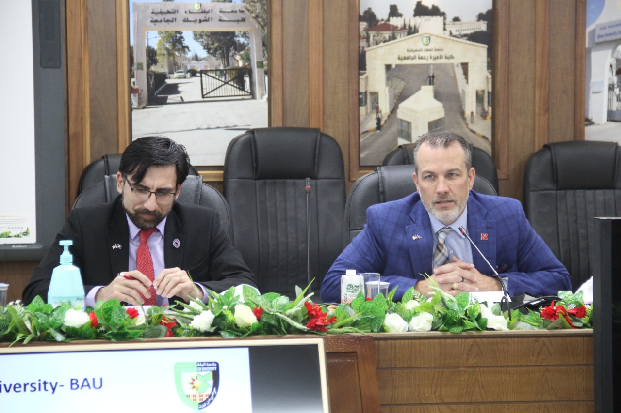 وفي بداية اللقاء رحب الاستاذ الدكتور العجلوني بالوفد الضيف معبرا عن اعتزازه بهذا اللقاء الذي يصب في مصلحة جامعة البلقاء التطبيقيه وجامعه نبراسكا الامريكيه