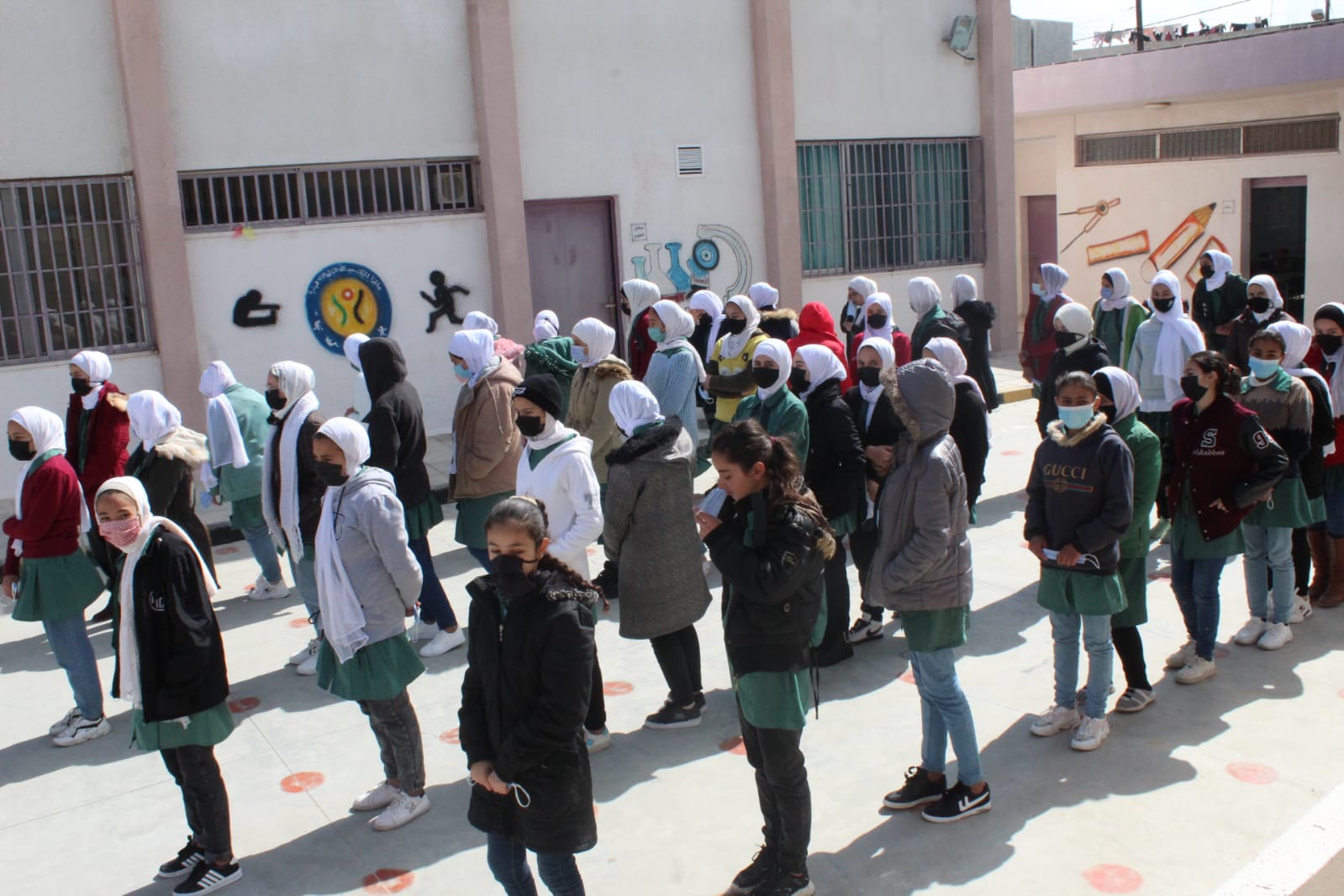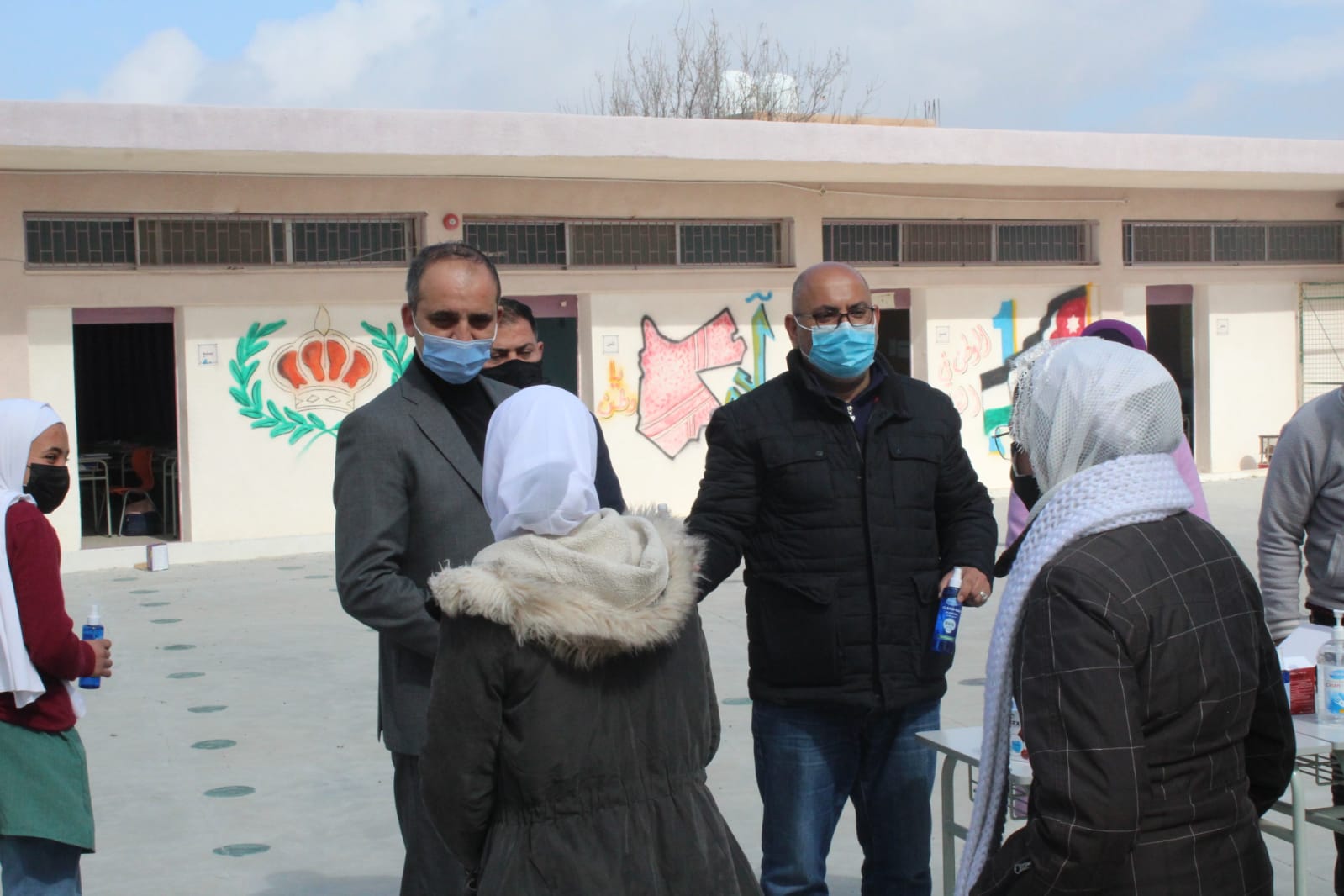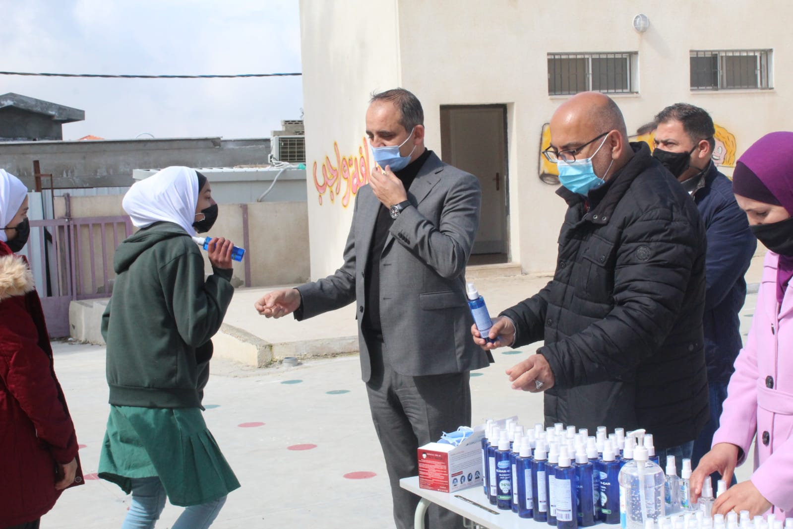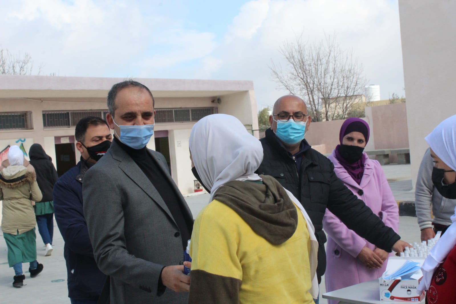 كلية الاميرة رحمة الجامعية تستكمل حملة توزيع المعقمات والكمامات في مدرسة ام العمد الأساسية المختلطة
