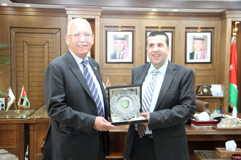 استقبل رئيس جامعة البلقاء التطبيقية الاستاذ أحمد فخري العجلوني في مكتبه اليوم نقيب المهندسين الأردنيين المهندس أحمد سمارة الزعبي ، لبحث سبل التعاون بين نقابة المهندسين والجامعة في المجالات المختلفة بحضور الأساتذة نواب رئيس الجامعة.