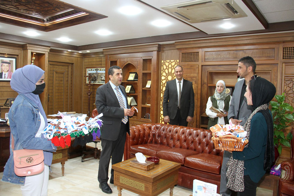 رئيس جامعة البلقاء التطبيقية الاستاذ الدكتور احمد فخري العجلوني قدم اثناء استقباله لطلبة نادي الخدمة في مكتبه الشكر على هذا المبادرة الطيبة التي تجسد المعاني والسمات الكريمة لشهر رمضان المبارك مشيرا الى ان مثل هذه المبادرات تعزز القيم الاسلامية وروح التعاون وعمل الخير والعطاء لدى الطلبة ، داعيا طلبة الجامعة الى الانخراط في النشاطات الجامعية التي تنظمها عمادة شؤون الطلبة والتي تعزز في انفسهم المسؤولية الاجتماعية والعمل الجماعي الايجابي .