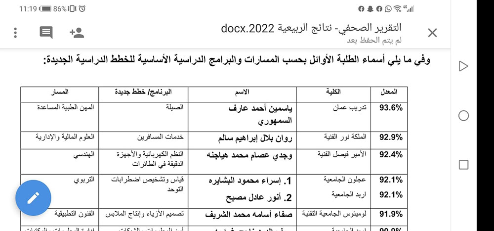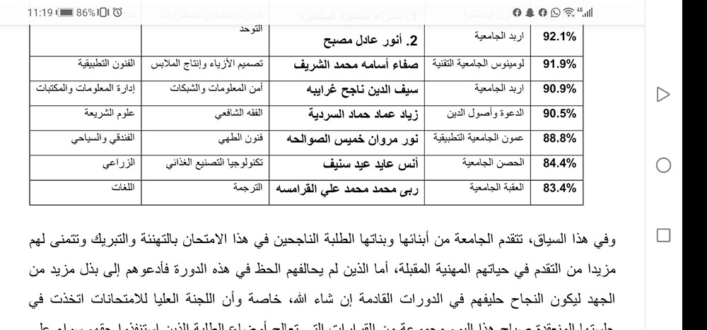 يسرني أن ألتقي بكم جميعاً في هذا الصباح لنعلن لكم نتائج امتحان الشهادة الجامعية المتوسطة (الشامل) في دورته الربيعية لعام 2022 بعد توقف عن عقد هذه الدورة استمر لسنتين بسبب جائحة كورونا، وقد حرصت الجامعة على اتخاذ كافة الإجراءات الممكنة لمساعدة الطلبة وتمكينهم من تحقيق متطلبات النجاح في الامتحان، خاصة وأن الدراسة كانت في معظمها في السنتين الأخيرتين عن بعد.