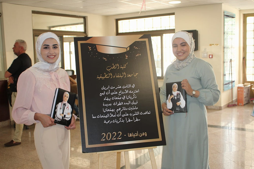 نظمت كلية الطب في جامعة البلقاء التطبيقية احتفالا بالطلبة المتوقع تخرجهم في صيف 2022 دفعة " ومن احياها " وقد تضمن الاحتفال الذي اقيم في حرم الكلية وحضره نائب رئيس الجامعة للشؤون المراكز عميد كلية الطب الاستاذ الدكتور نضال يونس وعدد من اعضاء الهيئة التدريسية والادارية والطلبة افتتاح قاعة دفاتر الطلبة المتوقع تخرجهم والتي ستمكن طلبة الكلية من الكتابة التذكارية وتسجيل تعليقاتهم على دفاتر زملائهم الطلبة الخريجين خلال مرحلة الدراسة بالاضافة الى التقاط الصور التذكارية للطلبة .