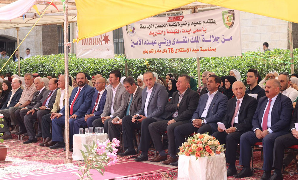 رعى محافظ اربد السيد رضوان العتوم "اليوم المفتوح الأول لطلبة كلية الحصن الجامعية " والذي يتزامن مع احتفالات المملكة الأردنية الهاشمية بعيد الاستقلال السادس والسبعين للمملكة بحضور نائب رئيس جامعة البلقاء التطبيقية لشؤون المراكز الأستاذ الدكتور نضال يونس وعميد كلية الحصن الجامعية الأستاذ الدكتور كامل الزبون ونواب لواء بني عبيد وعدد كبير من الفعاليات الرسمية والشعبية وشيوخ العشائر وطلبة الكلية .