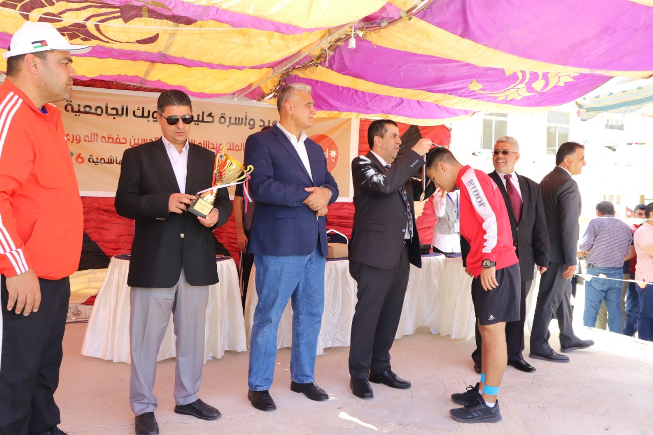 وفي ختام فعاليات هذا اليوم الاحتفالي وسباق اختراق الضاحية سلم رئيس الجامعة الكؤوس والميداليات على الفائزين من الطلبة ،حيث فاز بالمركز الاول في السباق الطالب ايهاب احمد من كلية الدفاع المدني وفاز في المركز الثاني الطالب كريم سليمان من كلية الطفيلة فيما جاء الطالب بدر جدعان من كلية الدفاع المدني في المركز الثالث فيما حل الطالب حسان العودات من كلية الدفاع المدني بالمركز الرابع والطالب معن محمد النعيمات من كلية معان الجامعية بالمركز الخامس ، وعلى صعيد نتائج الفرق فقد احتلت كلية الدفاع المدني المركز الاول وكلية معان الجامعية بالمركز الثاني وكلية اربد الجامعية بالمركز الثالث .