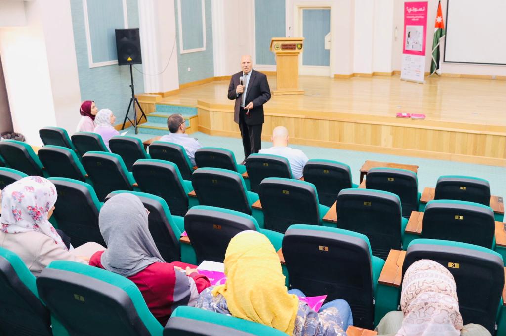 وتناولت المحاضرة مرض سرطان الثدي من حيث الأعراض والأسباب ونسب الإصابة بهذه الأمراض في الأردن.