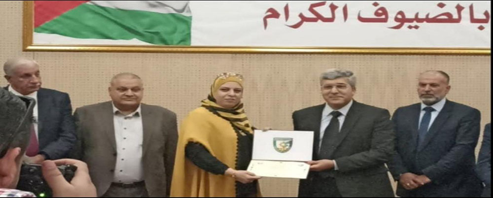 سلم عميد كلية اربد الجامعية الأستاذ الدكتور عبد المطلب خضراوي شهادة الموظف المثالي عن شهر أيار للزميلة أحلام الرّوابده خلال الحفل الذي أقامته الكلية بعيد الاستقلال تقديراً لجهودها المتميزة في العمل .