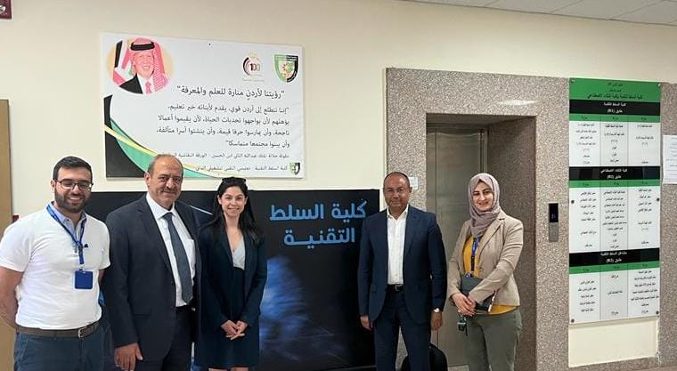 وبعد اللقاء قام الوفد بزيارة كلية السلط التقنية حيث اطلعوا على البرامج والتخصصات التي تدرس في الكلية والتي تخدم سوق العمل و المجتمع المحلي، وتحاكي سوق مهن المستقبل مثل السيارات الهجينة والذكاء الاصطناعي والابنية الذكية والإعلام الرقمي وعلم البيانات الضخمة وأمن المعلومات السيبراني.