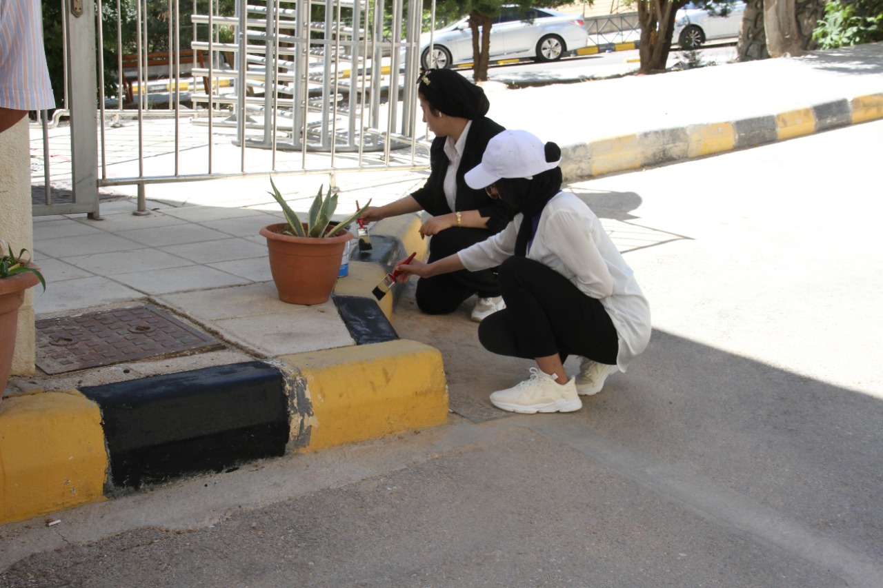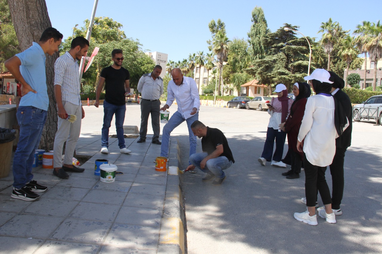 نظمت عمادة شؤون الطلبة في جامعة البلقاء التطبيقية حملة تطوعية لدهان ارصفة البوابات الرئيسية والأرصفة الداخلية لعدد من مباني الجامعة لإضفاء اللمسات الجمالية عليها .
