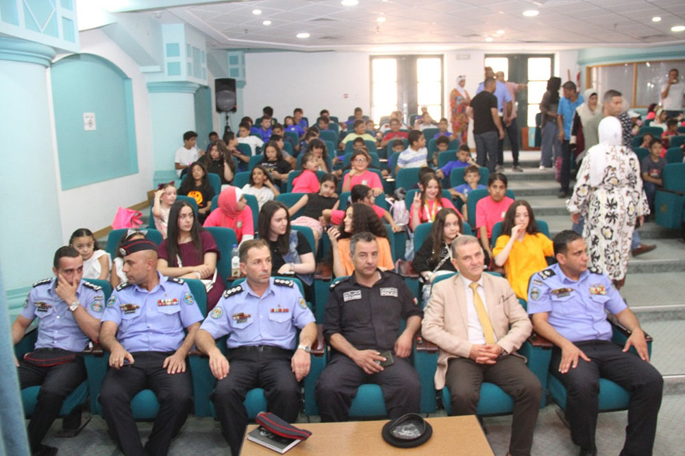 نائب رئيس الجامعة الاستاذ الدكتور ناصر الكلوب اشار الى اهمية عقد وتنفيذ البرامج والأنشطة المختلفة للاطفال والتي تهدف الى شغل اوقاتهم بالأنشطة المفيدة وتنمية قدراتهم العقلية والذهنية وتعزيز الثقة بانفسهم واكتشاف مواهبهم، مقدما شكره وتقديره لمديرية الامن العام ممثلة بالشرطة المجتمعية والمعهد المروري على تعاونها الدائمة من خلال العديد من المبادرات التي اطلقتها والمحاضرات التوعوية التثقيفية التي تقيمها لكافة الفئات العمرية .