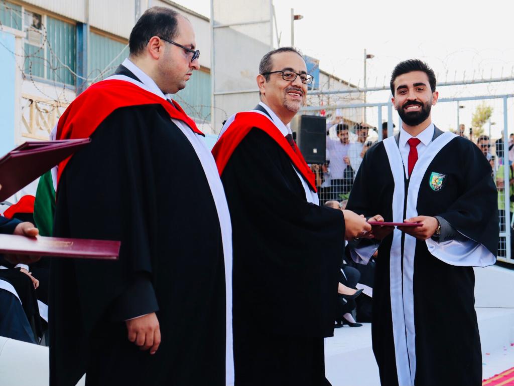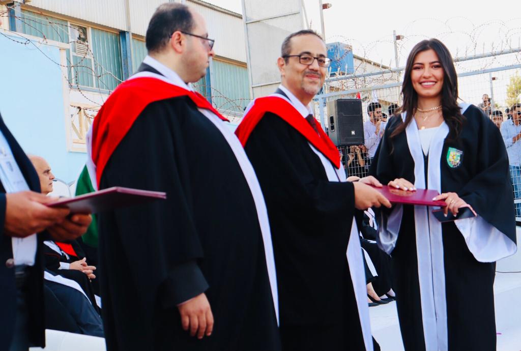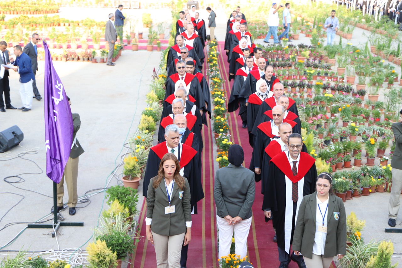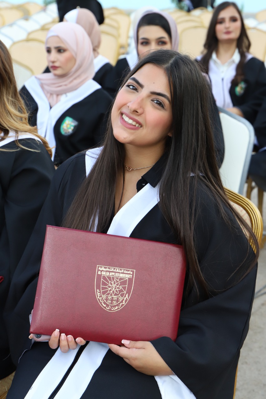 وقدم الاستاذ الدكتور هيثم الشبلي تحيات وتهاني رئيس وأسرة جامعة البلقاء التطبيقية للطلبة الخريجين وذويهم معبرا عن اعتزاز الجامعة بهم متمنيا لهم التوفيق والسداد في مستقبلهم كما حث الشبلي الطلبة الخريجين بأن يكونوا سفراء لجامعة البلقاء التطبيقية يعكسون سمعتها اينما حلت بهم الرحال .