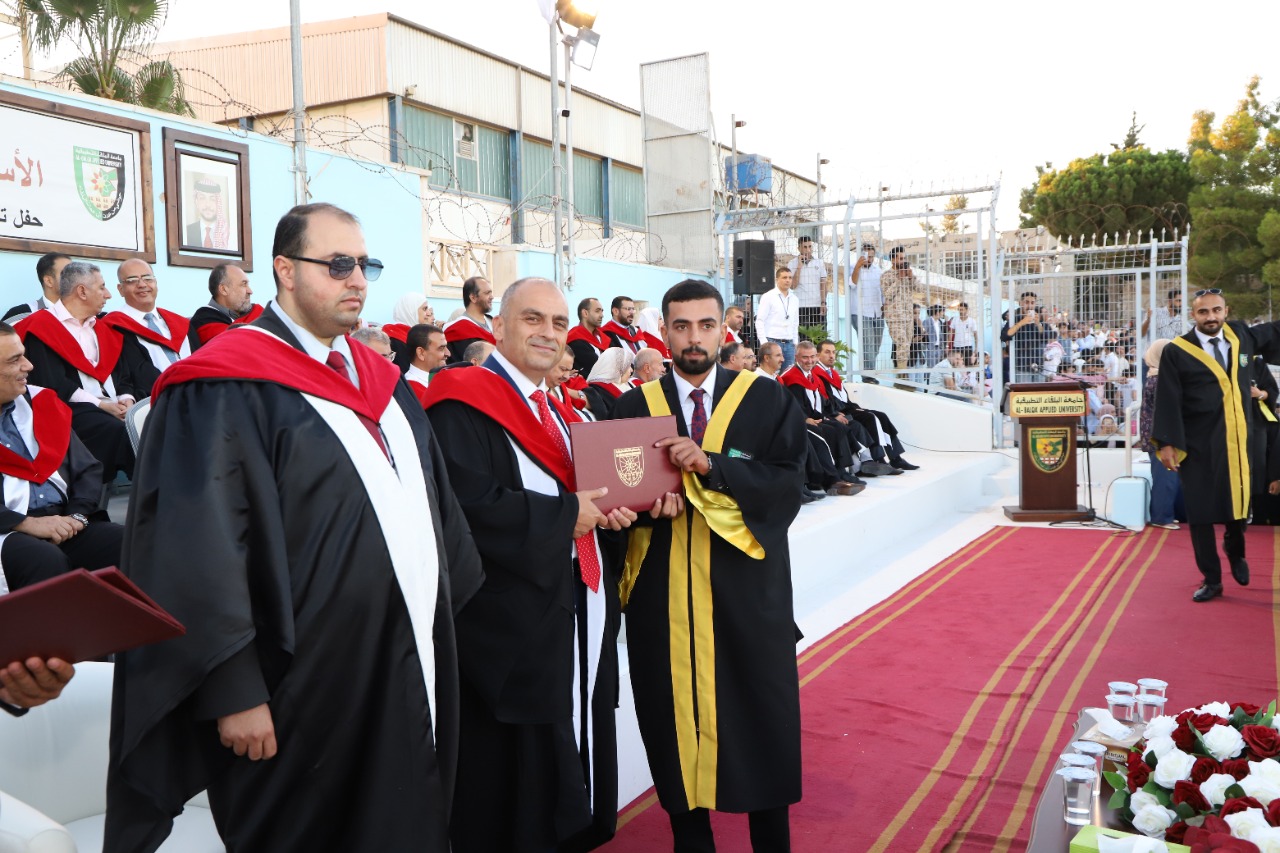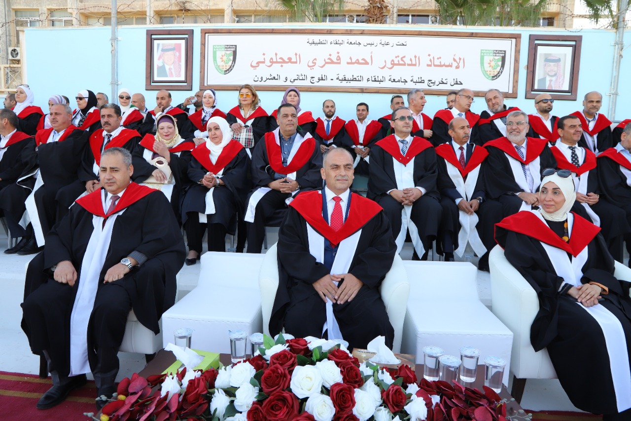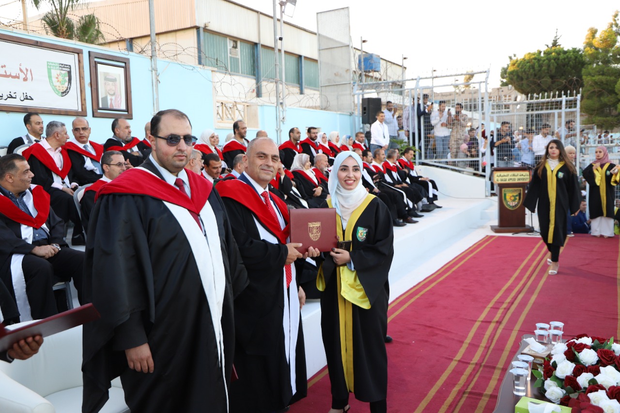 مندوبا عن رئيس جامعة البلقاء التطبيقية الاستاذ الدكتور أحمد فخري العجلوني رعى كل من عميدة كلية العلوم الاستاذ الدكتورة هاله جبر وعميد كلية الاميرة رحمة الجامعية الدكتور مزيد حياصات وعميد كلية السلط التقنية الاستاذ الدكتور عمر الحياصات حفل تخريج طلبة كليات العلوم ورحمة الجامعية والسلط التقنية بحضور عميد شؤون الطلبة الدكتور عزيز الرحامنه وأعضاء الهيئة التدريسية في الكليات الثلاث وجمع غفير من ذوي الطلبة الخريجين وذلك على ملعب الجامعة الرئيسي في السلط.