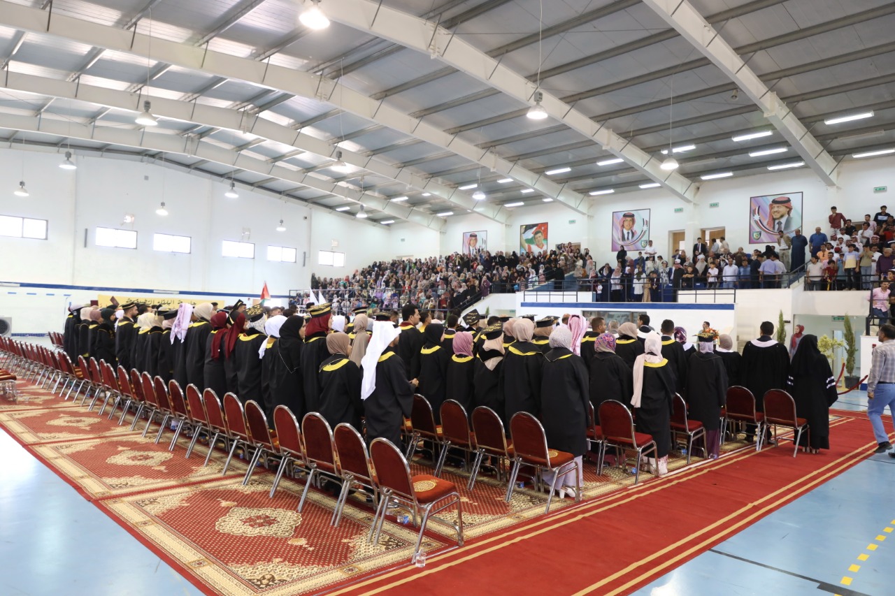 وفي ختام الحفل سلم عميد الكليه الخطيب الشهادات على الطلبة الخريجين البالغ عددهم (410) طالباً وطالبه.