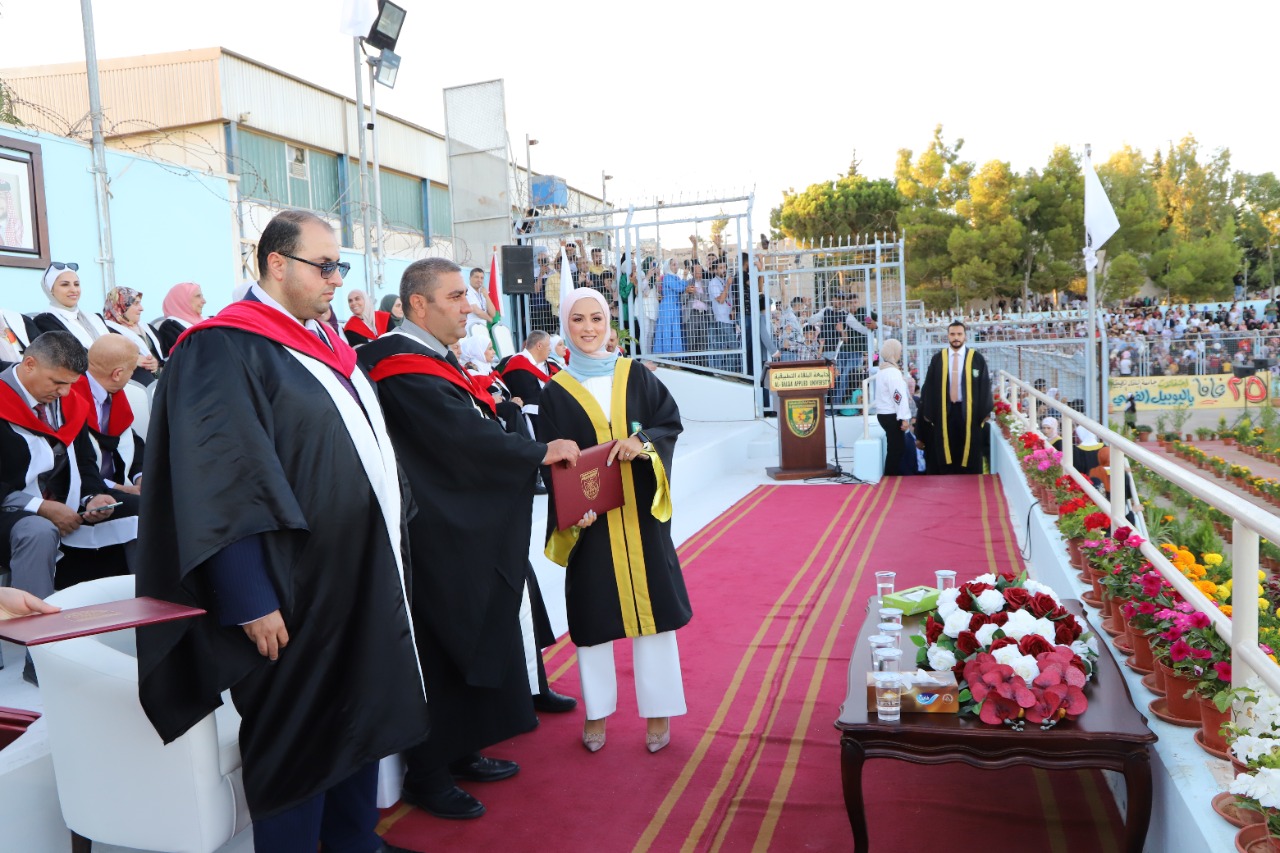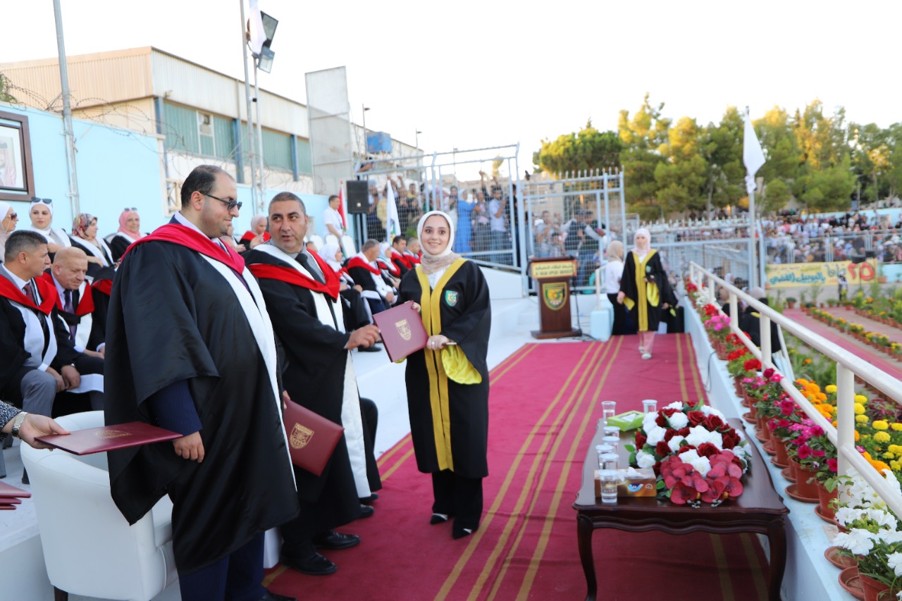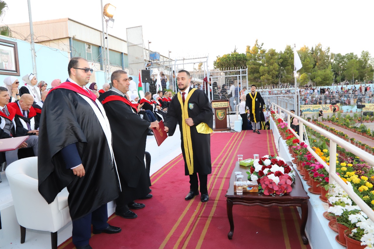 وفي ختام الحفل سلم عميد الكلية مندوب راعي الحفل الشهادات على الطلبة الخريجين والبالغ عددهم 893 طالبا وطالبه.