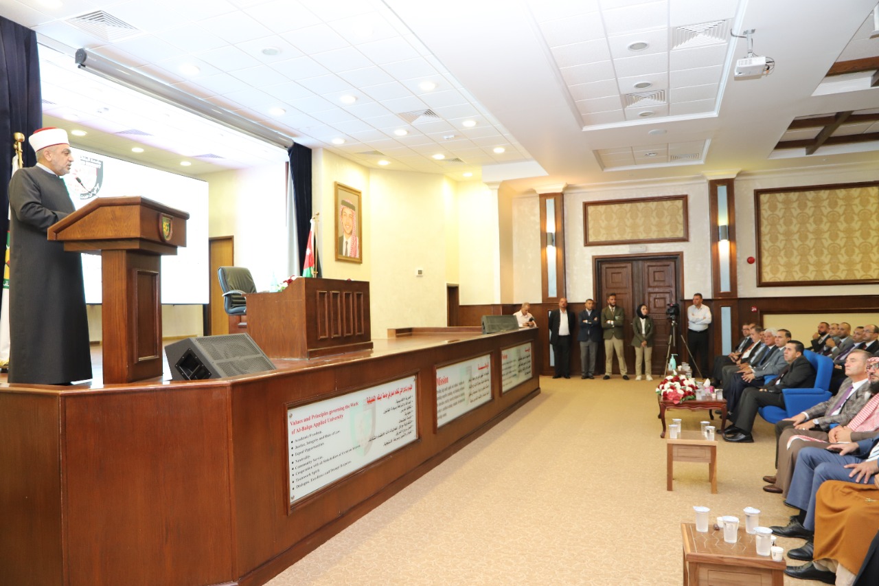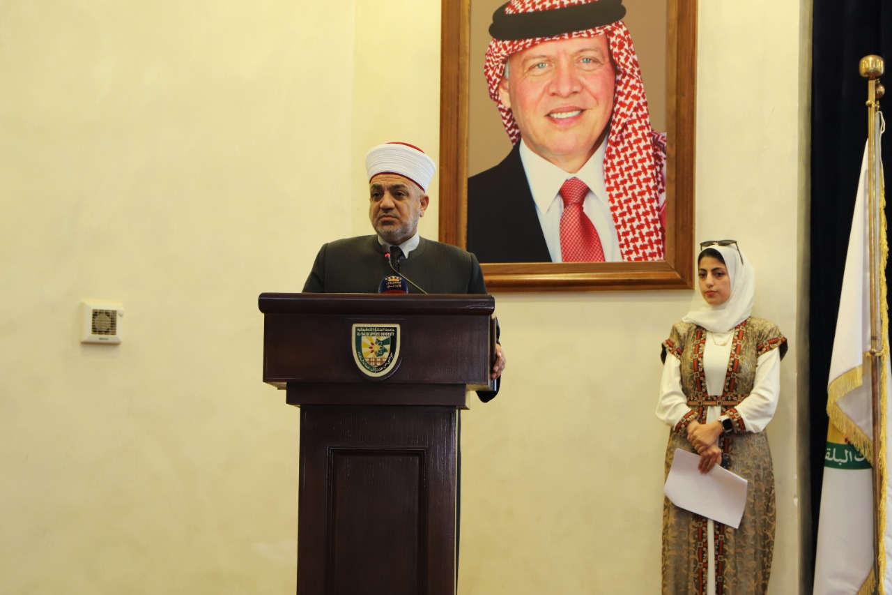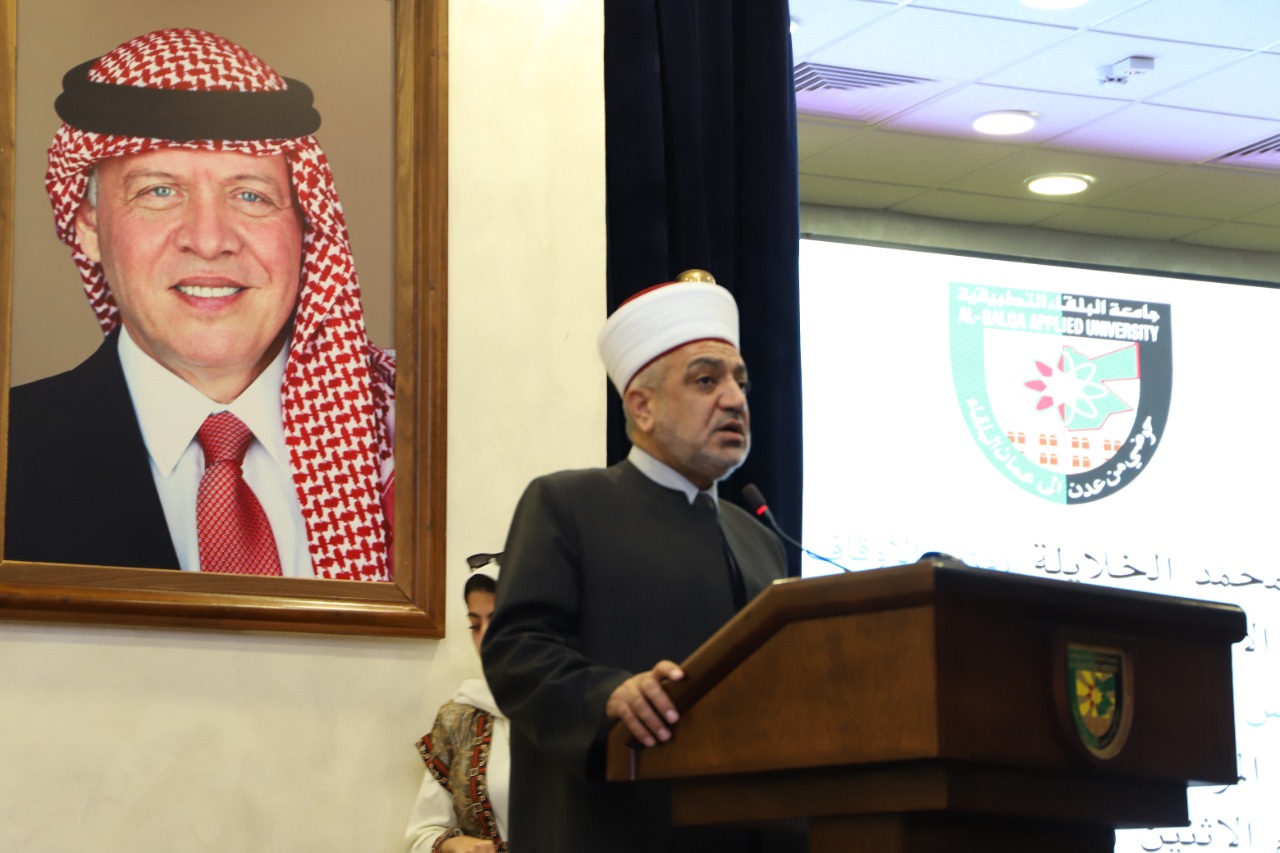 وألقى وزير الأوقاف الدكتور محمد الخلايلة كلمة في الإحتفال، الذي حضره محافظ البلقاء الدكتور فراس أبو قاعود ورئيس بلدية السلط الكبرى المهندس محمد الحياري ومدير أوقاف البلقاء الدكتور أحمد الخرابشة وعدد من ممثلي المؤسسات الرسمية والأهلية والمجتمع المحلي في محافظة البلقاء والأساتذه نواب رئيس الجامعة والطلبة ، هنأ فيها الأمة الإسلامية بذكرى المولد النبوي الشريف وذكر فيها أن الحديث في الجامعات يرتقي بمستوى الفكر والحضارة والعلم وإمام العلماء هو سيدنا محمد عليه الصلاة والسلام الذي جاء لبناء أمة برسالة عظيمة قائمة على العلم والحضارة.
