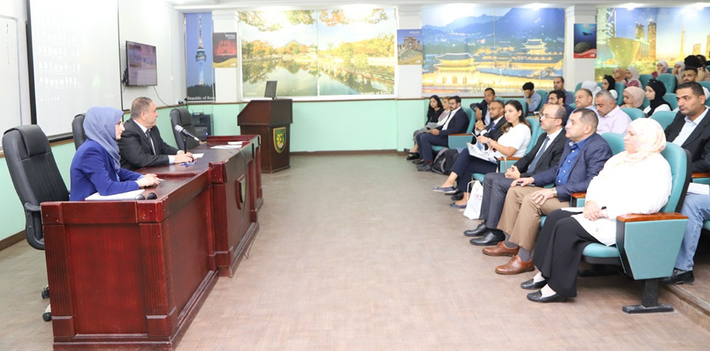 ورحب الاستاذ الدكتور القضاة بالوفد الضيف من مؤسسة فولبرايت والسفارة الامريكية مؤكدا على اهمية وسعي الجامعة الدائم إلى تعزيز التعاون والشراكات مع المؤسسات التعليمية المختلفة ودور البرامج الدولية في إثراء البحث العلمي في الجامعة من خلال الاستفادة في تدريب اعضاء الهيئة التدريسية والطلبة بأرقى الجامعات العالمية منوها الى ضرورة الاستفادة من المنح التي تقدمها فولبرايت لأعضاء الهيئة التدريسية والطلبة في كافة المجالات المعرفية.