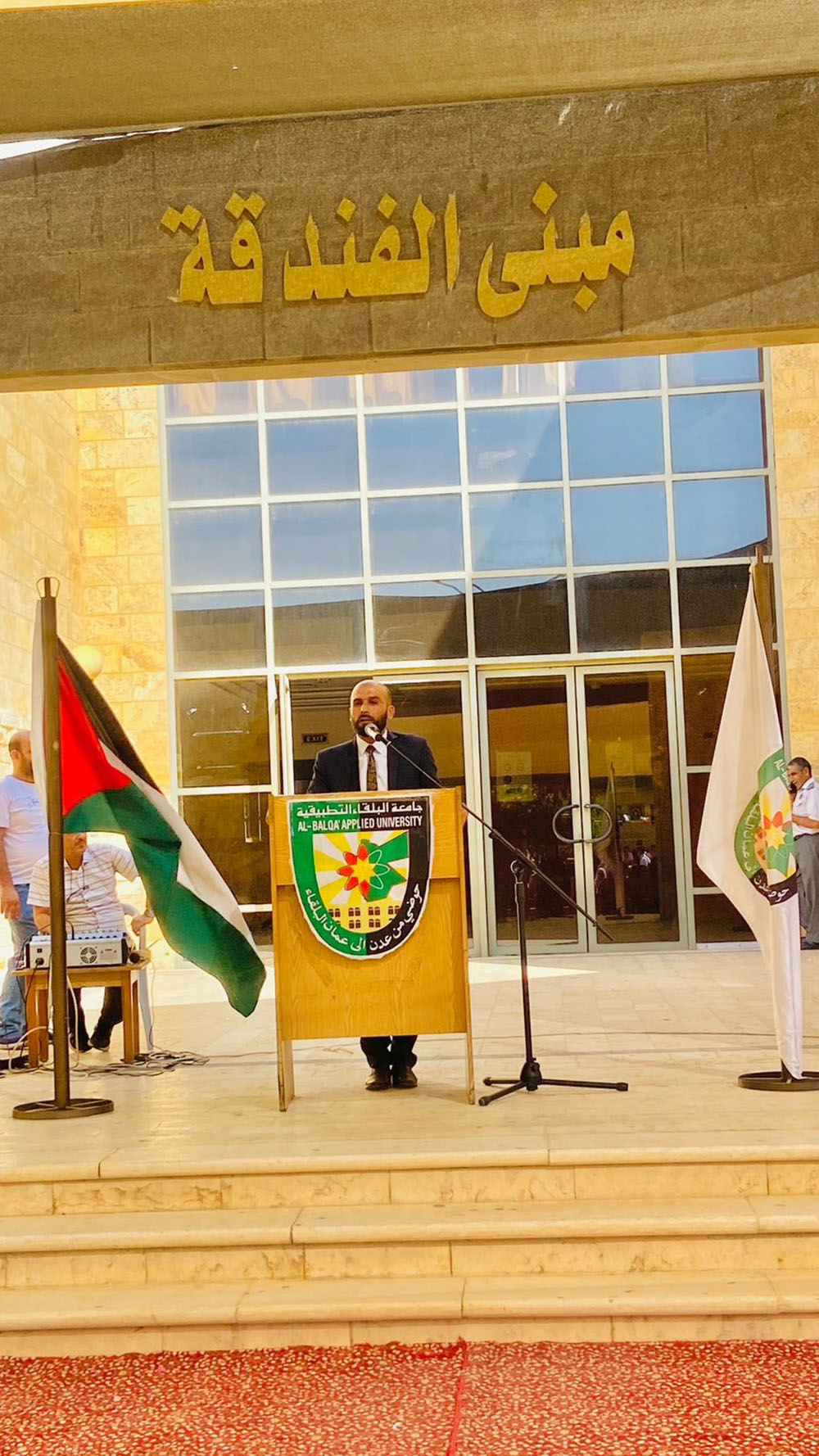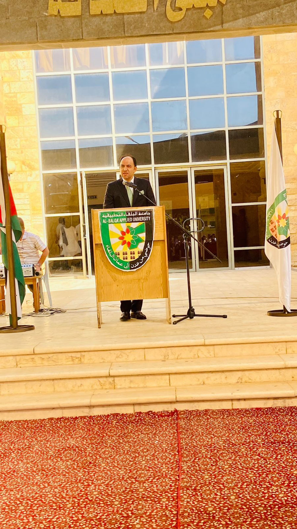 عميد كلية العقبة الجامعية الدكتور احمد بهجت شموط وفي كلمته خلال الاحتفال رحب بالطلبة الجدد متمنيا لهم التوفيق في حياتهم الجامعية الجديدة مشيدا  بالمستوى التعليمي والأكاديمي المتميز للجامعة في مختلف تخصصاتها ، التي تحقق من خلالها دعم احتياجات سوق العمل في محافظة العقبة  . مشيرًا إلى أن جامعة البلقاء التطبيقية – كلية العقبة الجامعية تضع البحث العلمي على رأس أولوياتها، وتسعى لتطوير أفكار طلبتها الإبداعية ومساعدتهم للوصول إلى افضل مستوى من التعليم وصقل الشخصية إضافة إلى أهمية التطوع واستغلال الفرص وتنمية القدرات والمهارات من خلال الاشتراك بالانشطة اللامنهجية التي تنظمها الكلية وذلك من خلال الشراكة مع مؤسسات المجتمع المحلي في القطاعين العام والخاص .