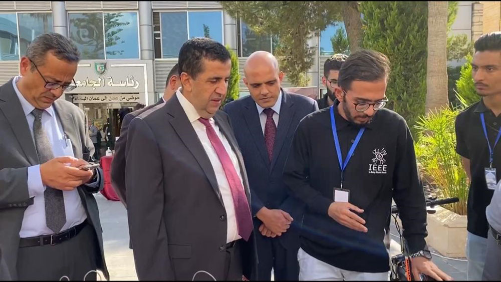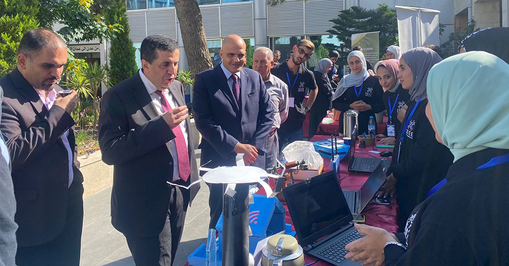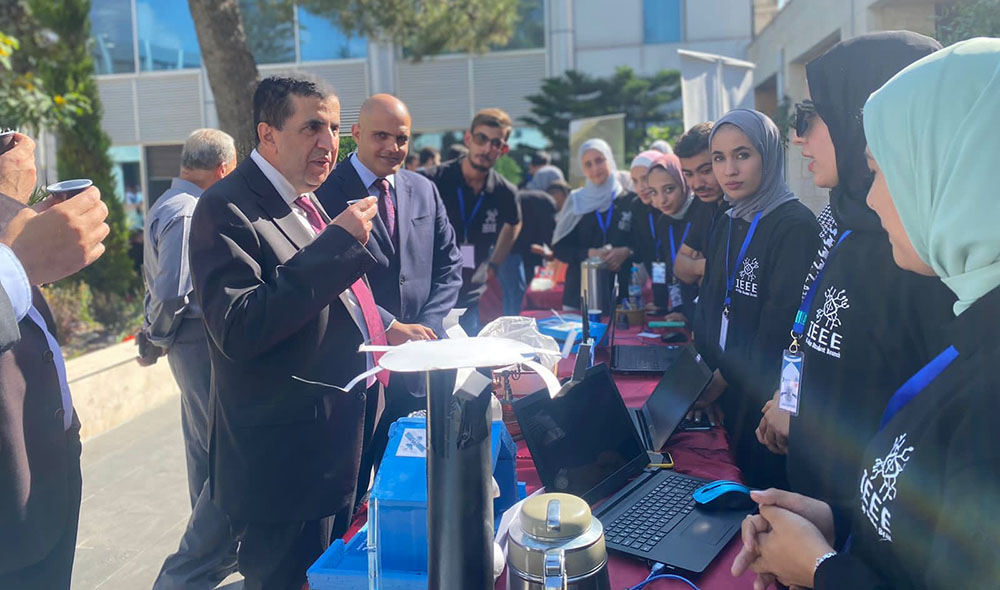 و افتتح رئيس الجامعة الاستاذ الدكتور احمد فخري العجلوني المعرض الطلابي الذي ضم العديد من المشاريع الإبداعية والحائزة على جوائز محلية و عالمية واستمع إلى شرح قدمه أعضاء الفرع الطلابي (IEEE) حول هذه المشاريع مؤكدا حرص الجامعة واهتمامها بدعم الافكار والمشاريع الابداعية للطلبة واهمية المشاركة في كافة المسابقات المحلية والدولية لإكساب الطلبة مزيدا من التجارب العالمية التي تصقل مهاراتهم وتطور قدراتهم العلمية والعملية.