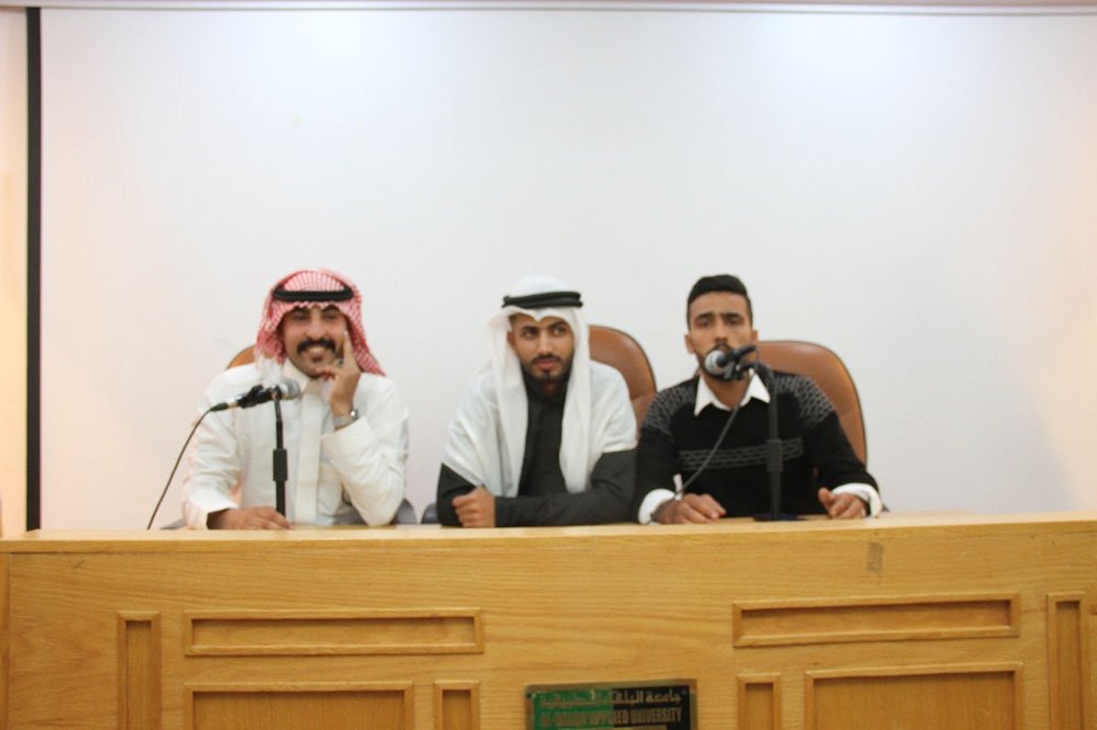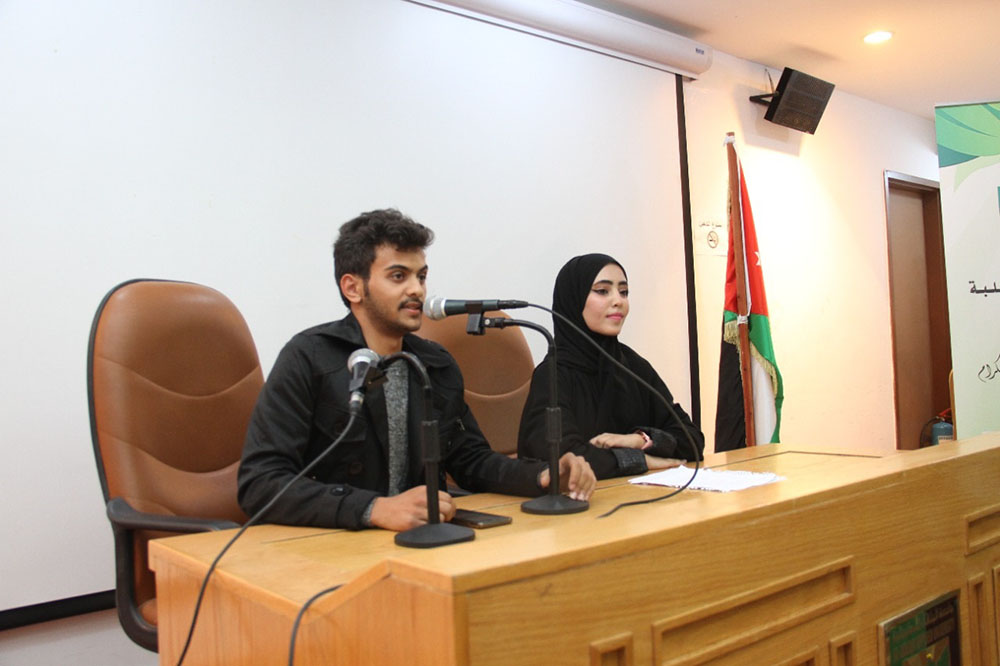 وقدم الطلبة همام حسن ويوسف الخوالده ومعتصم هلال والميزن الكعابنه وصخر بني عطا مجموعة من القصائد الشعرية النبطية التي امتازت بالبساطة ومحاكاة الواقع والسلاسة والعذوبة والغزل إضافة ان تناول الأبيات لمجموعة من القضايا الاجتماعية حيث لاقت القصائد الشعرية تفاعلاً كبيراً من قبل الحضور.