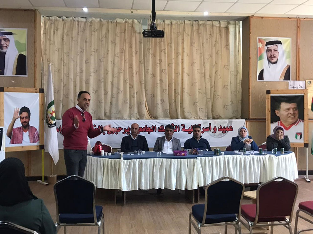 ورحب الدكتور عميد الكلية بالطلبة الجدد مبارك لهم قبولهم بكلية  الشوبك مشيرا الى ان لقائهم يأتي في اطار توجيهات  ادارة الجامعة بأهمية عقد اللقاءات الدورية مع الطلبة والاستماع الى ملاحظاتهم والعمل على توفير كل ما يحقق البيئية التعليمة المناسبة للطلبة ، كما واستعرض الدكتور الضلاعين نشاءت وتطور الكلية واهم التخصصات فيها ، ودعى الطلبة الى الانخراط والمشاركة في النشاطات والفعاليات التي تنظمها الكلية والتي تساهم وبشكل كبير في تنمية مهاراتهم وقدراتهم وبناء وصقل الشخصية .