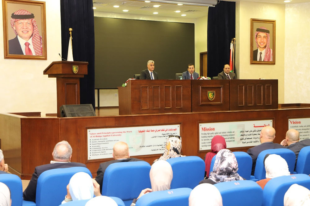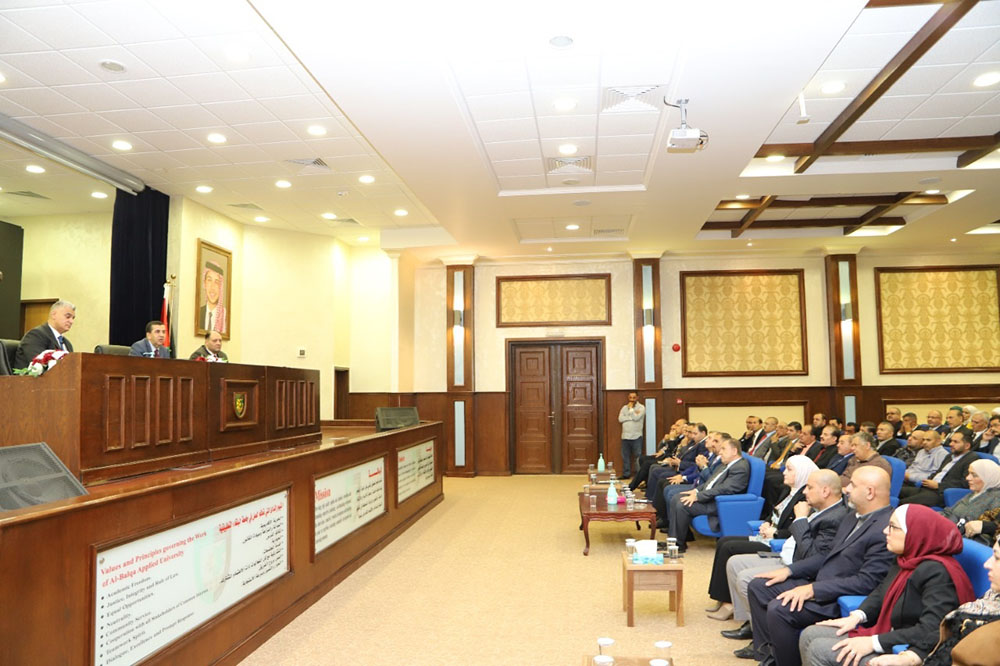 التقى رئيس جامعة البلقاء التطبيقية الأستاذ الدكتور أحمد فخري العجلوني بأعضاء الهيئتين التدريسية والإدارية في كليتي الأعمال والسلط للعلوم الإنسانية الثلاثاء على مسرح الجامعة الرئيسي.