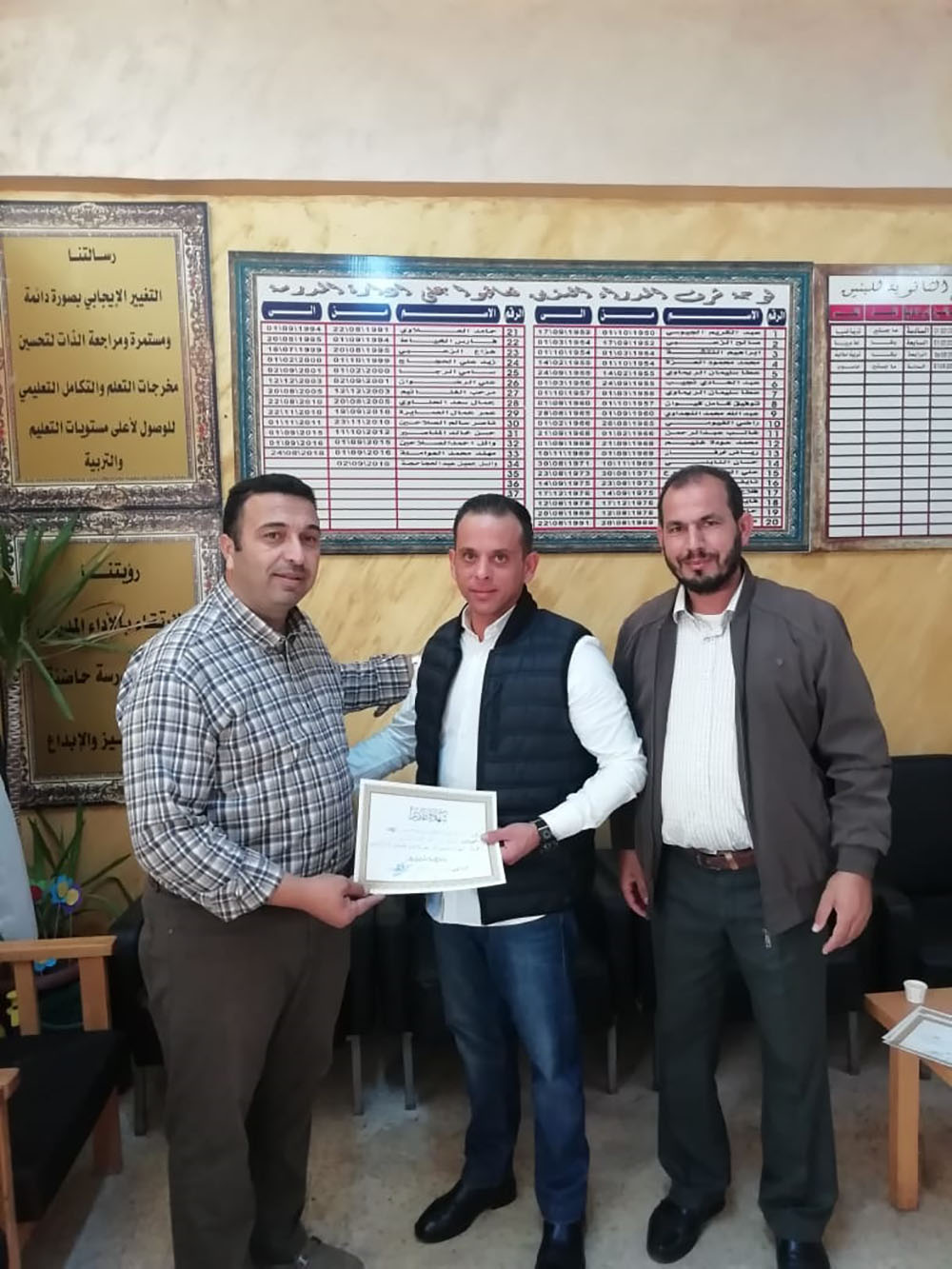 وفي النهاية قدم مدير المدرسة الاستاذ وائل الحجاحجة الشهادات التقديرية على المشاركين في المحاضرة كما قدم الشكر الجزيل لجامعة البلقاء التطبيقية ممثلة بوحدة التنمية وخدمة المجتمع المحلي والشرطة المجتمعية على هذه المحاضرة القيمة أملاً مزيداً من التعاون مستقبلاً.