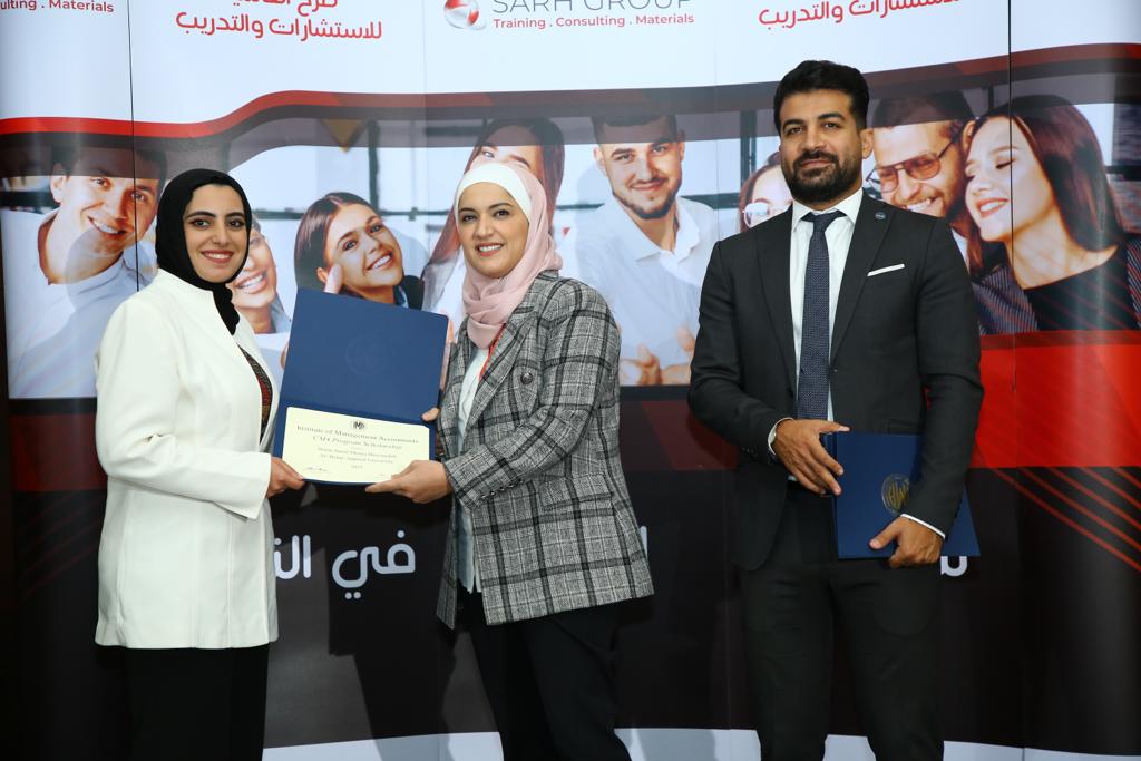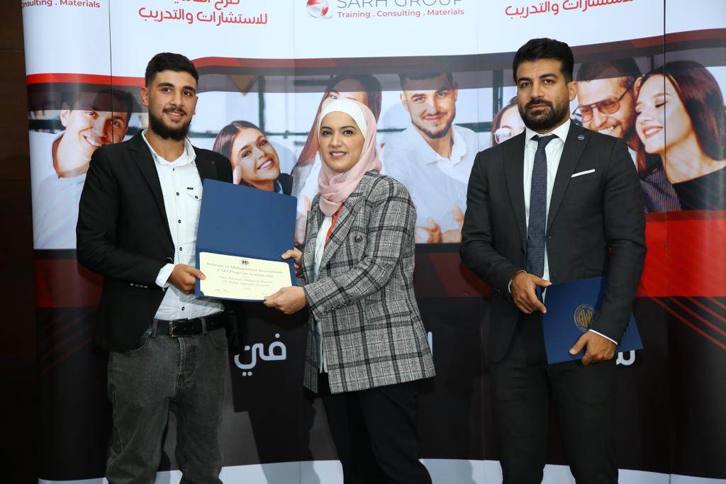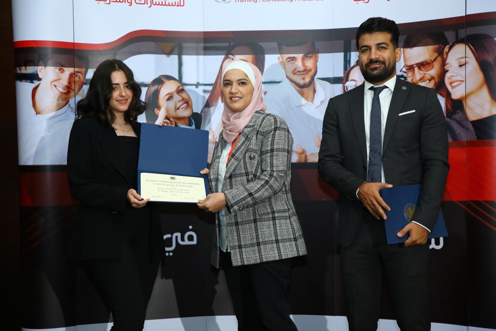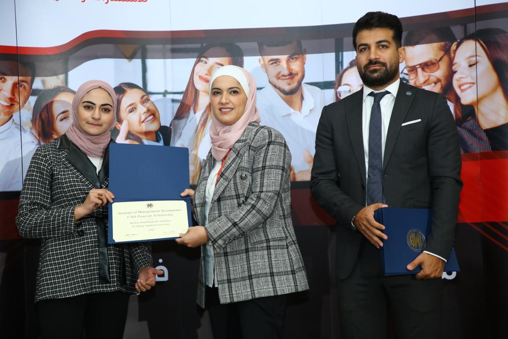 وقد حضر الحفل الدكتورة هنادي البطاينة مساعد عميد كلية الأعمال لشؤون ضمان الجودة والدكتور مراد ابو العدوس  من قسم المحاسبة في كلية الاعمال.  وتشمل هذه المنحة الحصول مجاناً على العضوية في معهد المحاسبين الإداريين الأمريكي (IMA) ، والإعفاء من رسوم دخول برنامج شهادة (CMA) و تكلفة مادة الإمتحان إلكترونياً ، والإعفاء من رسوم الإمتحان، وتأتي هذه المنح خدمة للطلبة الأردنيين ودعماً لهم في طريق الحصول على إعتراف مهني دولي.