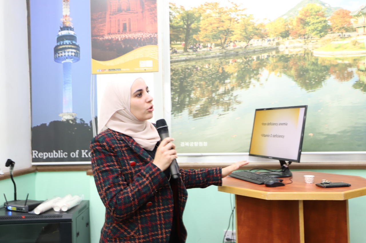 نظمت كلية التمريض في جامعة البلقاء التطبيقية فعالية تثقيفية طبية بحضور عميد كلية التمريض الدكتور لورنس الحديد ونائب العميد الدكتورة سارة الجعافرة . وتحدثت في المحاضرة اخصائية طب الاطفال وحديثي الولادة الدكتورة معالي محمود الدبعي عن فقر الدم ومخاطره عند الاطفال وأهمية الفحص الدوري لمخزون الحديد في الجسم مبينة اهمية هذا العنصر  في  حيوية جسم الانسان ،كما بينت الدكتورة الدبعي اعراض نقص الحديد ومنها الارهاق الشديد وشحوب الجلد وآلام الصدر وهشاشة الاضافر .