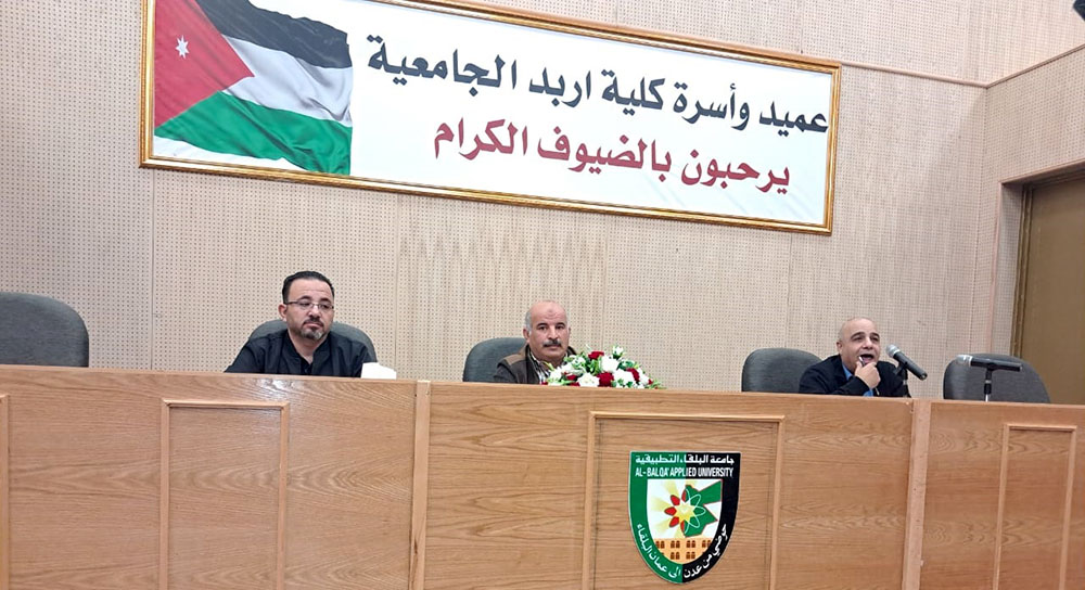 برعاية نائب عميدة كلية إربد الجامعية الدكتور أشرف الرجوب ،نظم قسم اللغة العربية وآدابها اليوم الخميس ندوةً علمية بعنوان " استراتيجيات تحليل النص الأدبي " ألقاها الأستاذ الدكتور  ناصر يعقوب أستاذ الأدب والنقد في القسم ، وأدار الندوة رئيس قسم اللغة العربية وآدابها الأستاذ الدكتور  محمد الدَّخيّل بحضور مساعدي العميدة وعدد من أعضاء الهيئتين التدريسية والإدارية والطلبة .