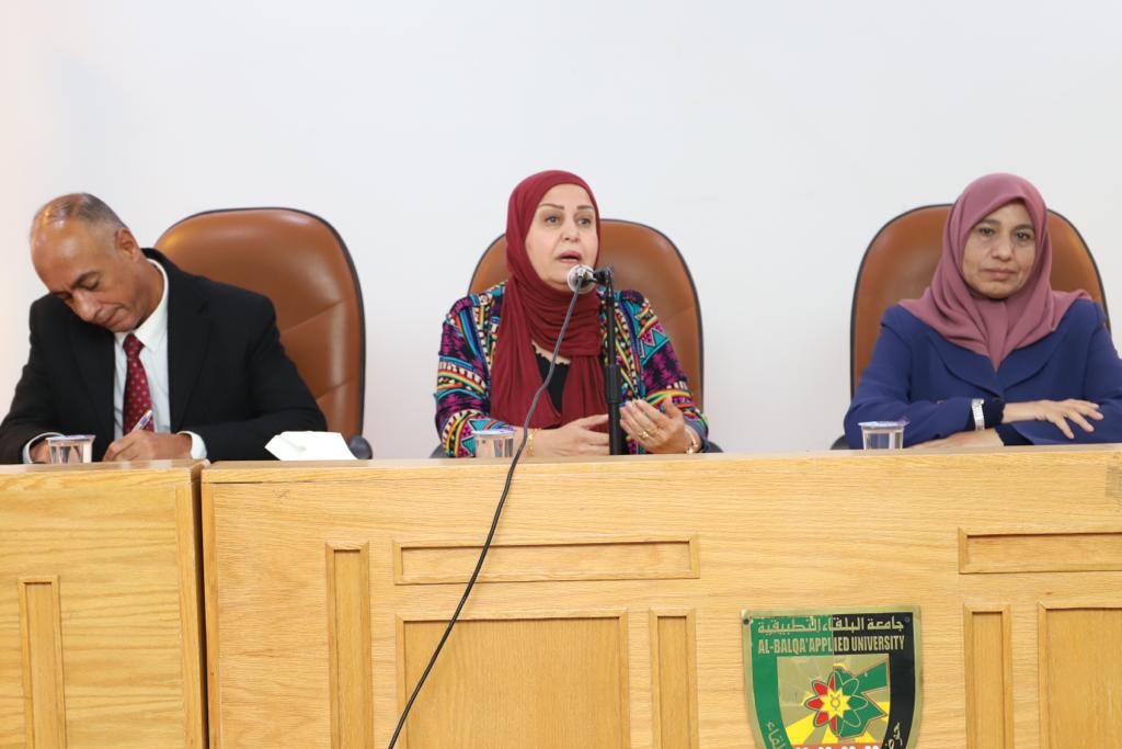 نظمت وحدة التنمية وخدمة المجتمع المحلي في جامعة البلقاء التطبيقية وبالتعاون مع جمعية معهد تضامن النساء الاردني وبمناسبة اليوم العالمي لمناهضة العنف ضد المرأة ندوة بحضور نائب رئيس الجامعة للشؤون الكليات الاستاذ الدكتور ناصر كلوب والمديرة التنفيذية لجمعية معهد تضامن النساء الاردني انعام العشى وعدد من ممثلين عن مؤسسات المجتمع المدني والمحلي في محافظة البلقاء وطلبة الجامعة .