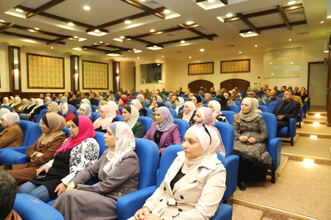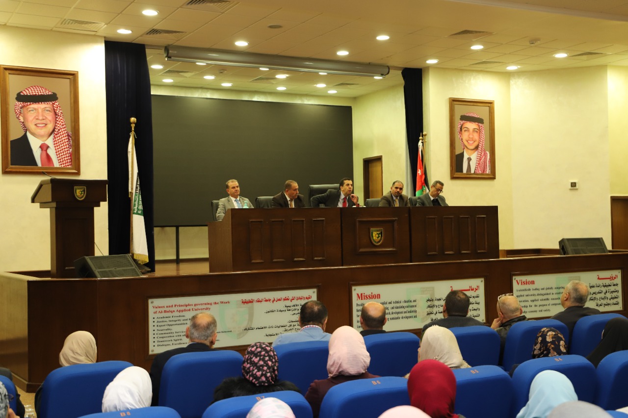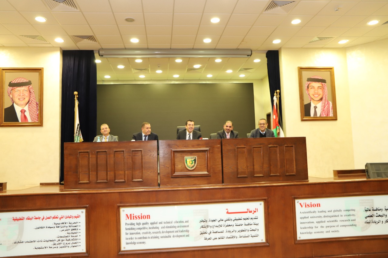 ضمن سياسة إدارة الجامعة في تحقيق التواصل بين جميع العاملين فيها والعمل بروح الفريق الواحد ، التقى رئيس جامعة البلقاء التطبيقية الأستاذ الدكتور أحمد فخري العجلوني موظفي الجامعة من الهيئة الإدارية في عدد من مراكز ووحدات ودوائر الجامعة وبحضور الأساتذة نواب الرئيس على مسرح الجامعة الرئيسي.