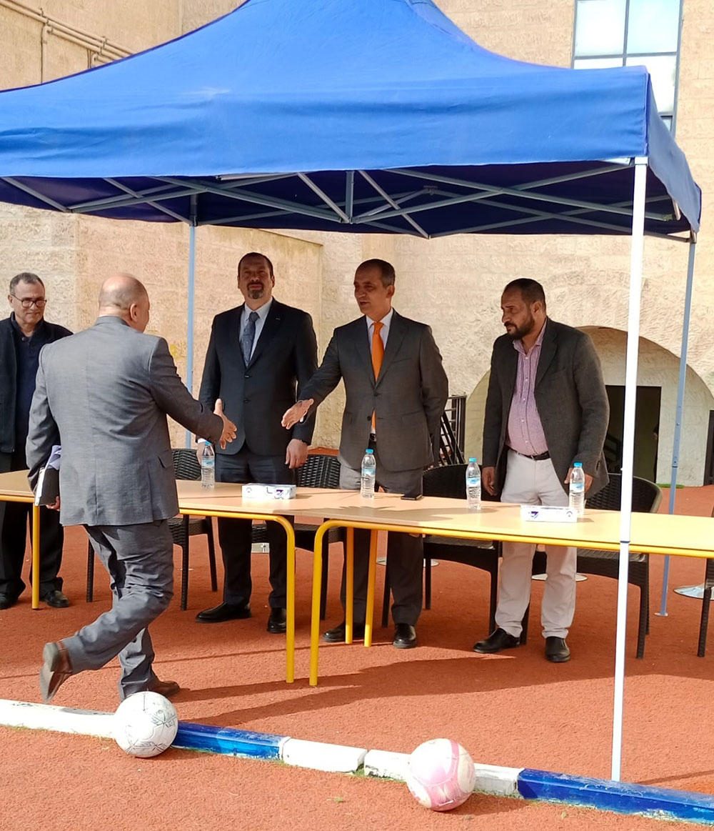 مندوبا عن رئيس جامعة البلقاء التطبيقية الاستاذ الدكتور احمد العجلوني إفتتاح رئيس الإتحاد الرياضي للكليات الجامعية والجامعية المتوسطة عميد شؤون الطلبة في جامعة البلقاء التطبيقية الدكتور خالد ناصر الزعبي بطولة كرة القدم للطالبات في كلية الخوارزمي بحضور مدير عام كلية الخوارزمي السيد سلطان القدومي وعدد مميز من الكليات المشاركة.
