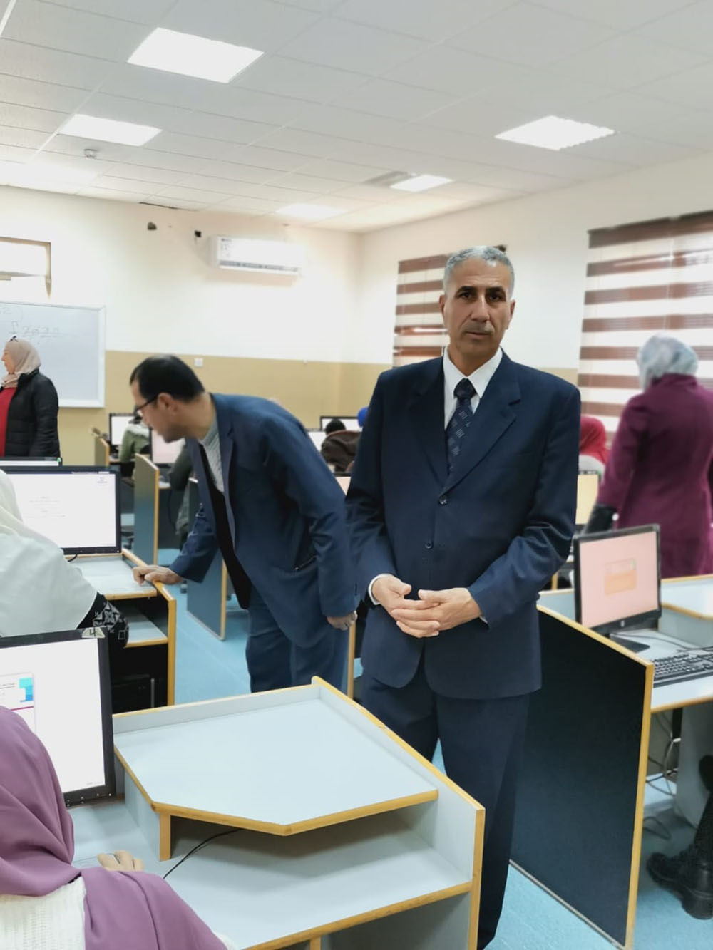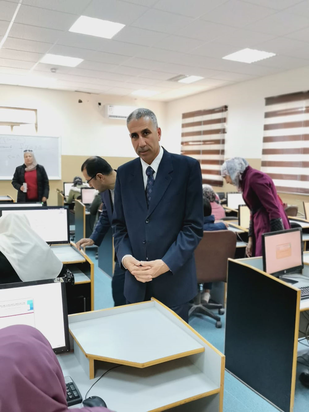 تفقد اليوم الأحد عميد كلية عجلون الجامعية /جامعة البلقاء التطبيقية الأستاذ الدكتور وائل الربضي قاعات إمتحان الكفاءة للعام الدراسي 2022/ 2023 في مختبرات الحاسوب في الكلية والذي تعقده هيئة الإعتماد لمؤسسات التعليم العالي في الجامعات الاردنية للوقوف على جودة التعليم في الكلية.