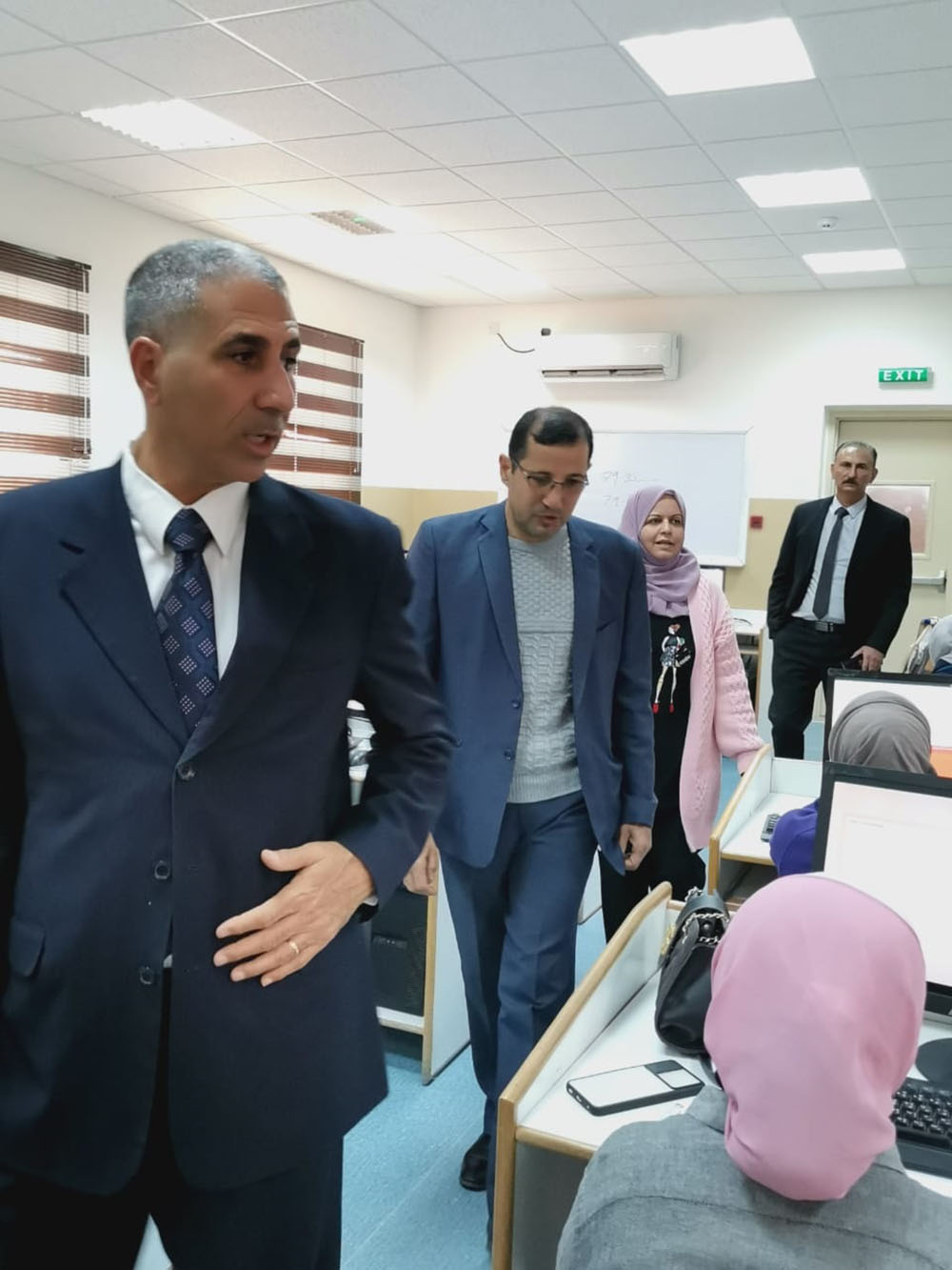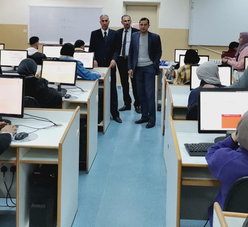 ورافق عميد الكلية المهندس محمد انجادات رئيس قسم الحاسوب منسق التعليم الإلكتروني والإمتحانات المحوسبةوالدكتور خالد الربابعه رئيس قسم التخطيط والتطوير والجودة.