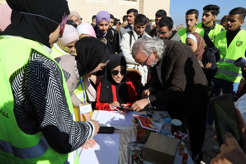 والقى الدكتور عبداللطيف ابو رمان كلمة رحب فيها بالفنان سهيل بقاعين في رحاب جامعة البلقاء التطبيقية مؤكدا على ان عمادة شؤون الطلبة تحرص كل الحرص على عقد مثل هذه الورش التدريبية والتوعية ايمانا بضرورة اثراء عقول طلبة الجامعة بمعلومات تنويرية هامة يحتاجونها في حياته الجامعية وبعد التخرج مشددا في الوقت ذاته على ايلاء ذوي الاحتياجات الخاصة اهمية قصوى لاتاحة المجال اماهم لممارسة حياتهم العلمية والعملية بشكل لائق كما غيرهم من الطلبة .