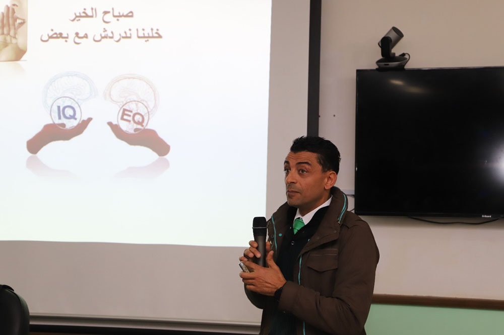 وتحدث في الفعالية الخبير النفسي الاستاذ شادي الطيبي مبينا بان الذكاء العاطفي يساعد  الفرد على النجاح في العمل وفي جميع مجالات الحياة المختلفة معرفا الذكاء العاطفي بأنه قدرة الفرد على التعرف على مشاعره وأحاسيسه والتعامل معها بايجابية  جنبا الى جنب مع قدرة الفرد على معرفة مشاعر الاخرين وأحاسيسهم والتعامل معها بايجابية .