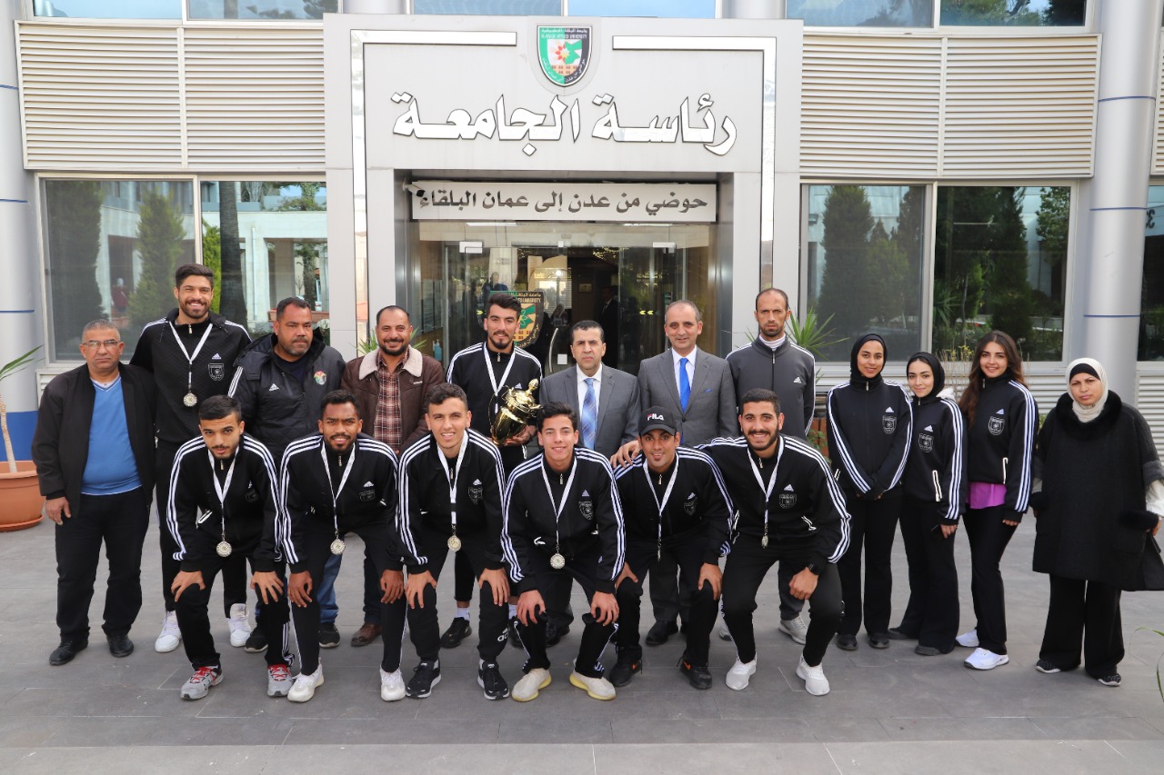 التقى رئيس جامعة البلقاء التطبيقية الاستاذ الدكتور احمد فخري العجلوني وبحضور عميد شؤون الطلبة الدكتور خالد الزعبي منتخب الجامعة لكرة القدم والمشارك في بطولة خماسي كرة القدم للجامعات الأردنية وفريق منتخب الجامعة المشارك في لعبة الريشة الطائرة للطالبات والتي اقيمت منافساتها في مدينة العقبة بمشاركة 21 فريق من مختلف الجامعات الاردنية الحكومية والخاصة.