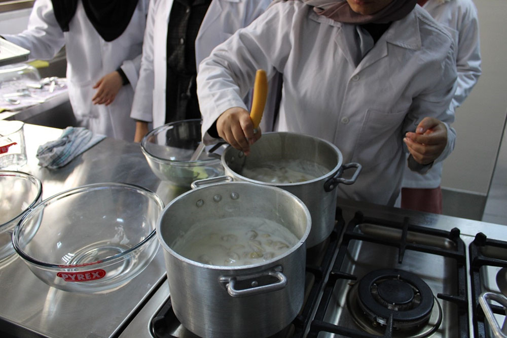 كما اكدت مشرفة المختبر المهندسة جمانة المعايطة على ضرورة تطبيق إجراءات السلامة العامة في المطبخ .