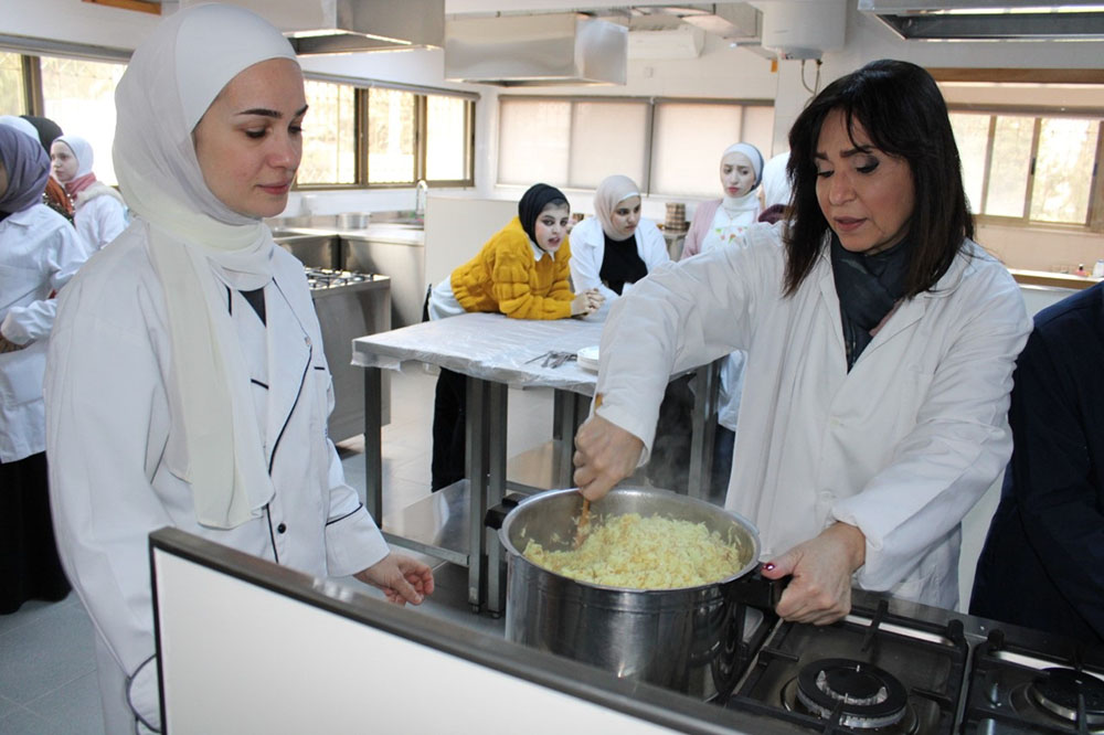 نظّم قسم العلوم الإجتماعية والتطبيقية /قسم الإقتصاد المنزلي  وبالتعاون مع مساعد العميد لشؤون التدريب والتطويروقسم خدمة المجتمع المحلي والدراسات والاستشارات في كلية الاميرة عاليه الجامعية ورشة عمل بعنوان” طرق إنتاج الطعام وخدمته”، قدمتها الشيف دانا الصباغ في حرم الكلية /مختبر التغذية .