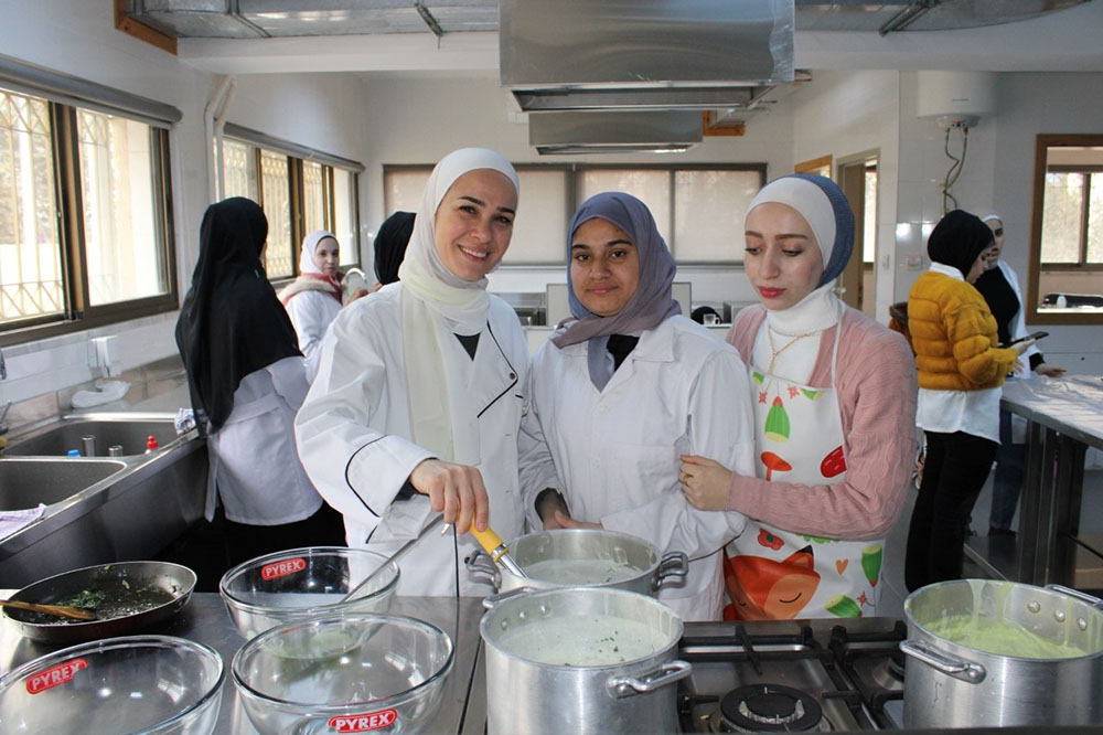 ووجه عميد الكلية الاستاذ الدكتورناجي السعايده شكره للشيف الصباغ وللطالبات مؤكدا على أن اكتساب أيّ مهارة في مادة ما لا يتم إلا من خلال أصحاب الخبرات ممّا يتوجب على الطالبات العمل في المجال الذي تبدع فيه.