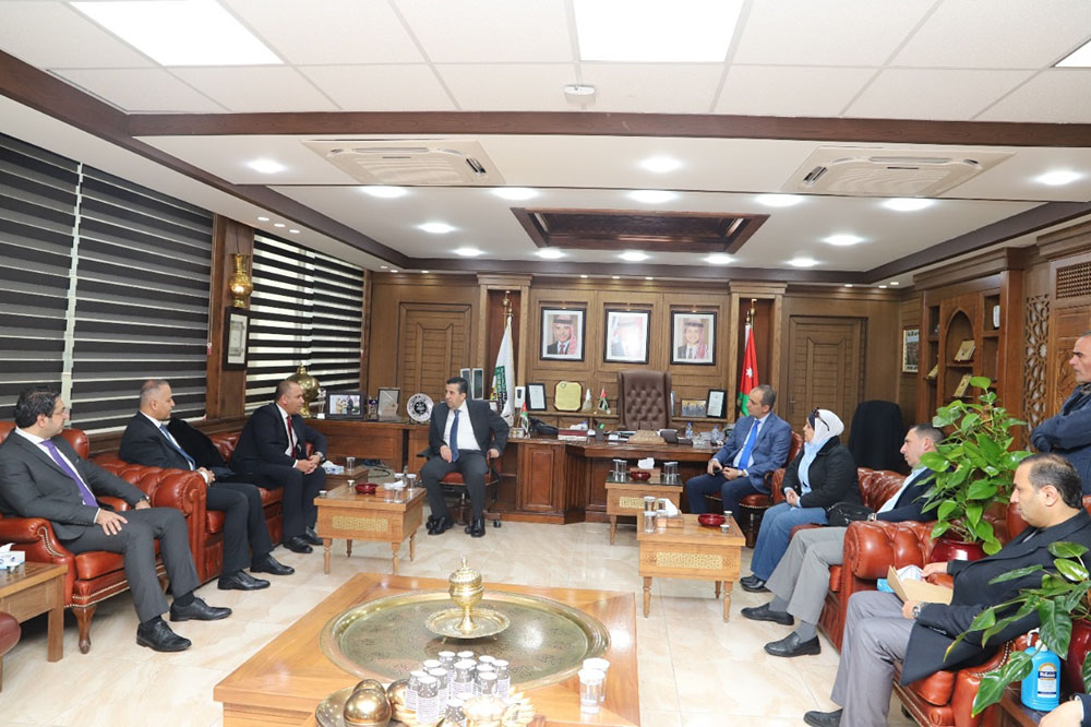 أستقبل رئيس جامعة البلقاء التطبيقية الاستاذ الدكتور احمد فخري العجلوني في مكتبه امين عام وزارة الشباب الدكتور حسين الجبور ورئيس لجنة التقييم في جائزة الحسين بن عبدالله الثاني للعمل التطوعي الدكتور عمر الهنداوي بحضور نائب الرئيس لشؤون الكليات الاستاذ الدكتور ناصر كلوب وعميد شؤون الطلبة الدكتور خالد الزعبي.