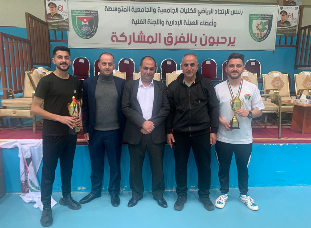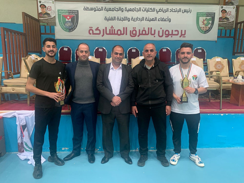 تتقدم عمادة كلية الكرك الجامعية ممثلة بعميد الكلية الأستاذ الدكتور محمد نايف الصرايرة ومساعديه للشؤون الطلابية والأكاديمية وأعضاء الهيئتين التدريسية والإدارية بالتهنئة والتبريك لطلبتنا الأعزاء بفوزهم بالمركز الأول بالبطولة التاسعة عشر للاتحاد الرياضي للكليات الجامعية بجامعة البلقاء التطبيقية في مدينة العقبة وذلك بمناسبة احتفالات الجامعة بالعيد الواحد والستين لميلاد جلالة الملك عبدالله الثاني بن الحسين المعظم من خلال الفوز ببطولة الطاولة عن طريق الطالب هيثم البستنجي وبطولة الريشة عن طريق الطالب ابراهيم الصقور على مستوى كليات المملكة.