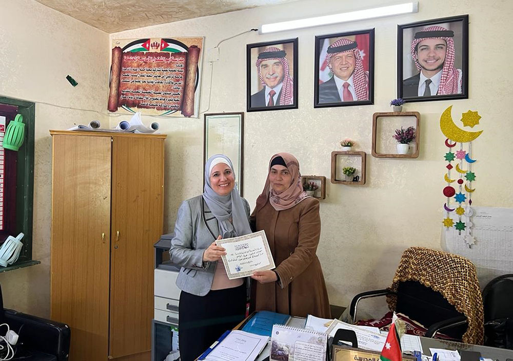 و قدمت مديرة المدرسة السيدة خديجة العرايضة كتاب شكر لعطوفة رئيس جامعة