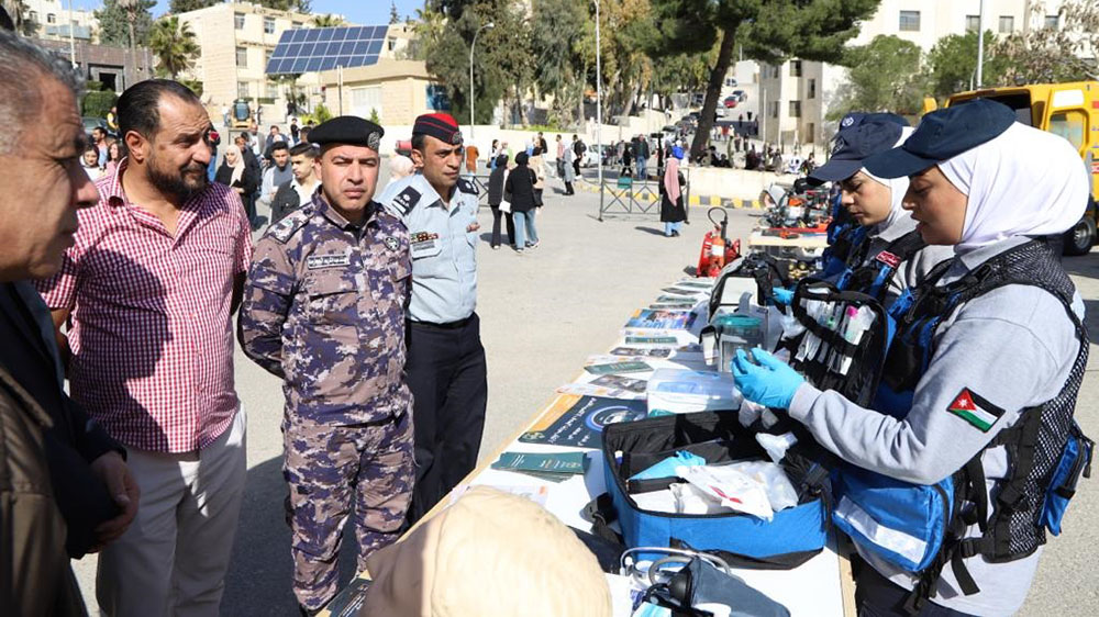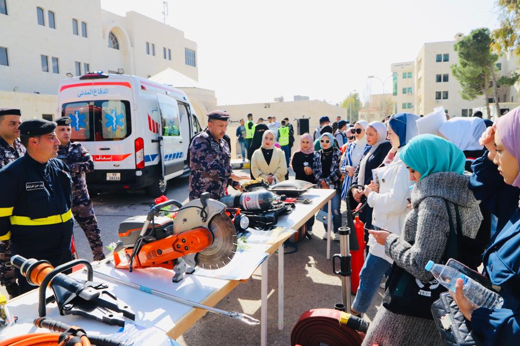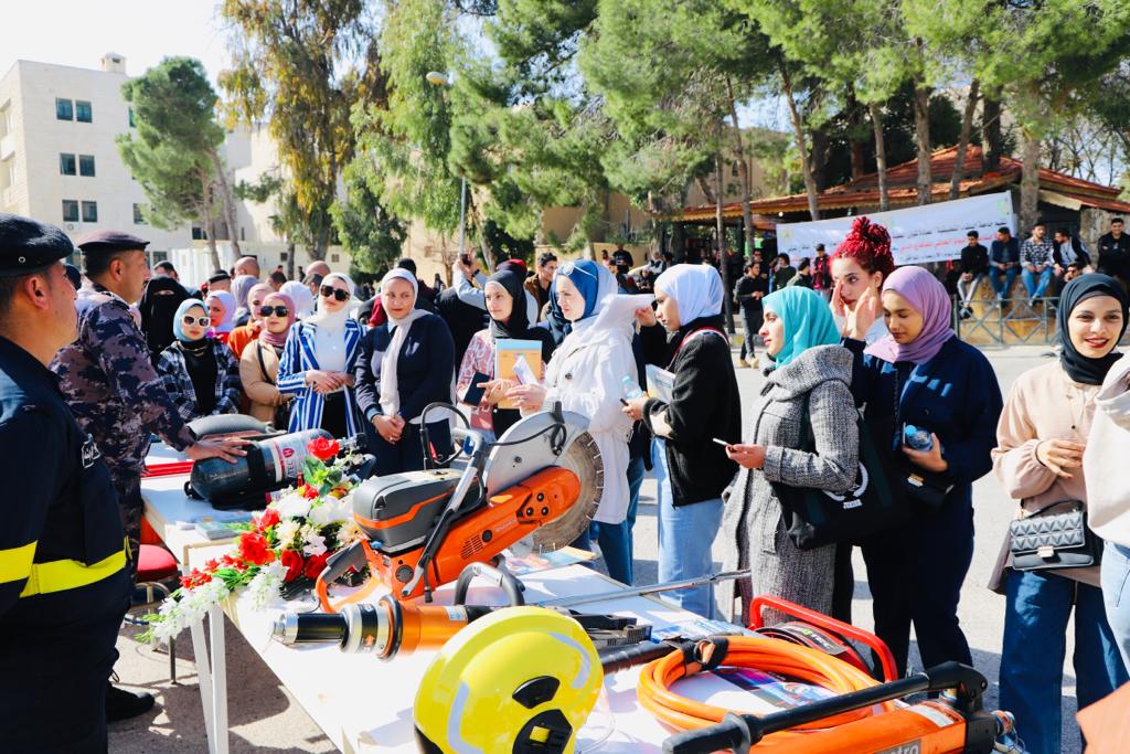 وتضمن الاحتفال الذي حضره رئيس شعبة العمليات في مديرية دفاع مدني البلقاء الرائد مهند العجرمي وعدد من مدراء الدوائر في عمادة شؤون الطلبة ونظم في الساحة الخارجية للمكتبة المركزية اقامة معرض شامل لكافة الادوات والأجهزة والمستلزمات الفنية التي تستخدمها كوادر الدفاع المدني اثناء العمل في الاطفاء والحرائق والإسعاف والغوص بالإضافة الى سيارات الاسعاف .