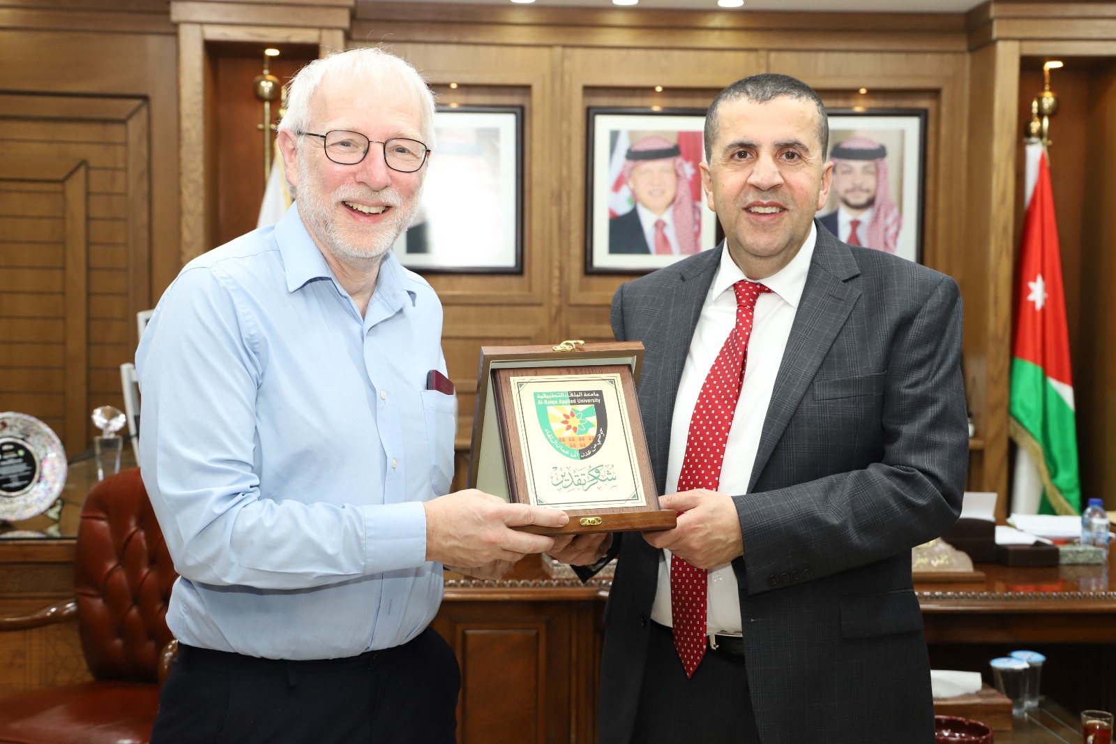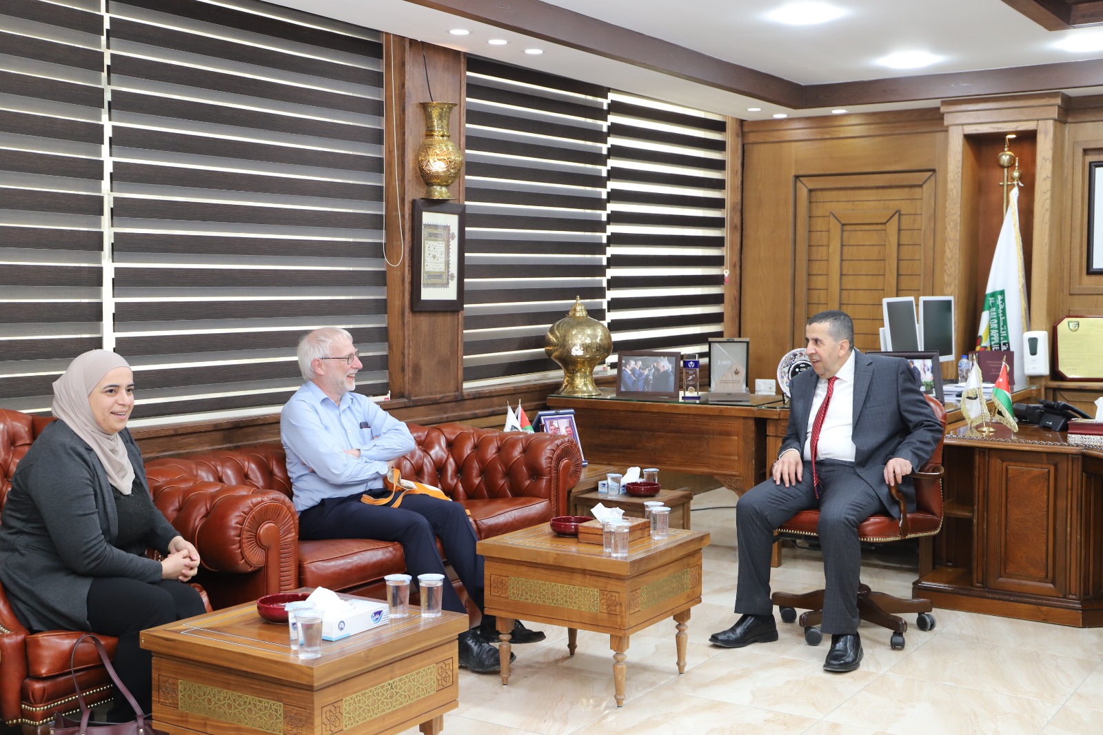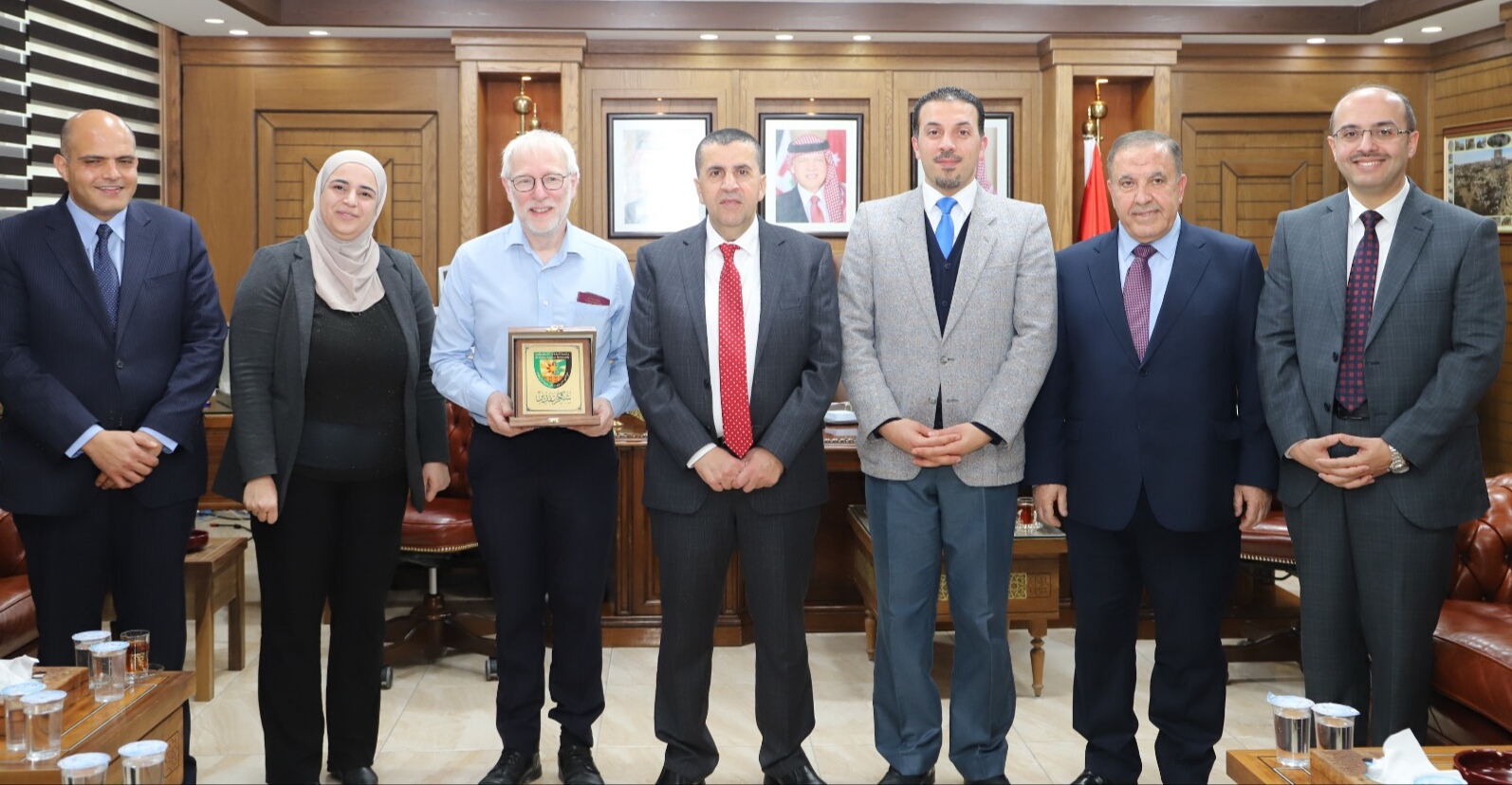 استقبل رئيس جامعة البلقاء التطبيقية الاستاذ الدكتور أحمد فخري العجلوني في مكتبه البرفسور جوناثان تينيسون عضو هيئة التدريس من قسم الفيزياء وعلوم الفضاء في جامعة كلية لندن (UCL) بحضور الدكتورة الاء العزام الاستاذ المساعد في قسم الفيزياء من الجامعة الاردنية مديرة مؤسسة استروجو الأردنية ونائب الرئيس للشؤون الأكاديمية الأستاذ الدكتور زكريا القضاه، وعميد البحث العلمي والابتكار الأستاذ الدكتور سعيد أبو رمان .