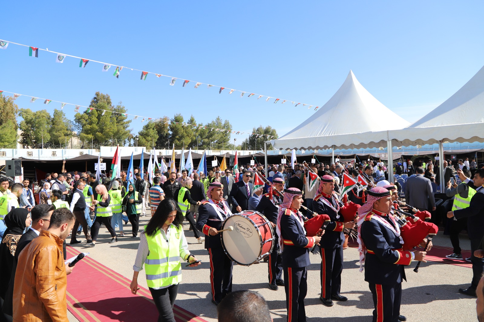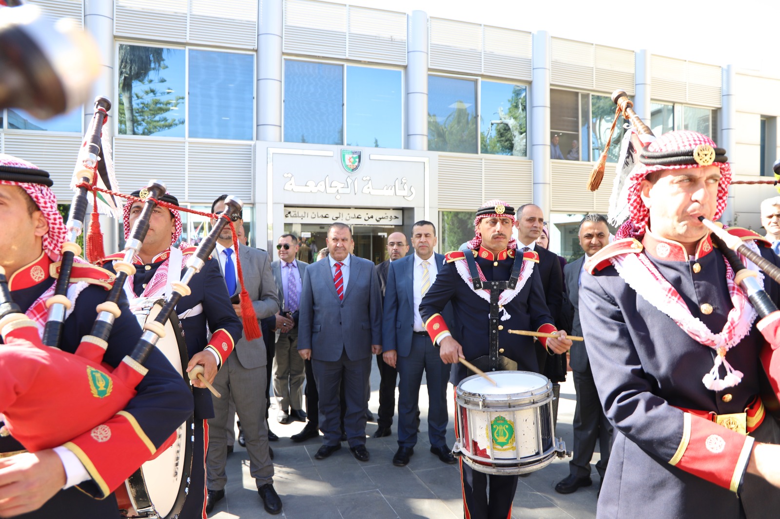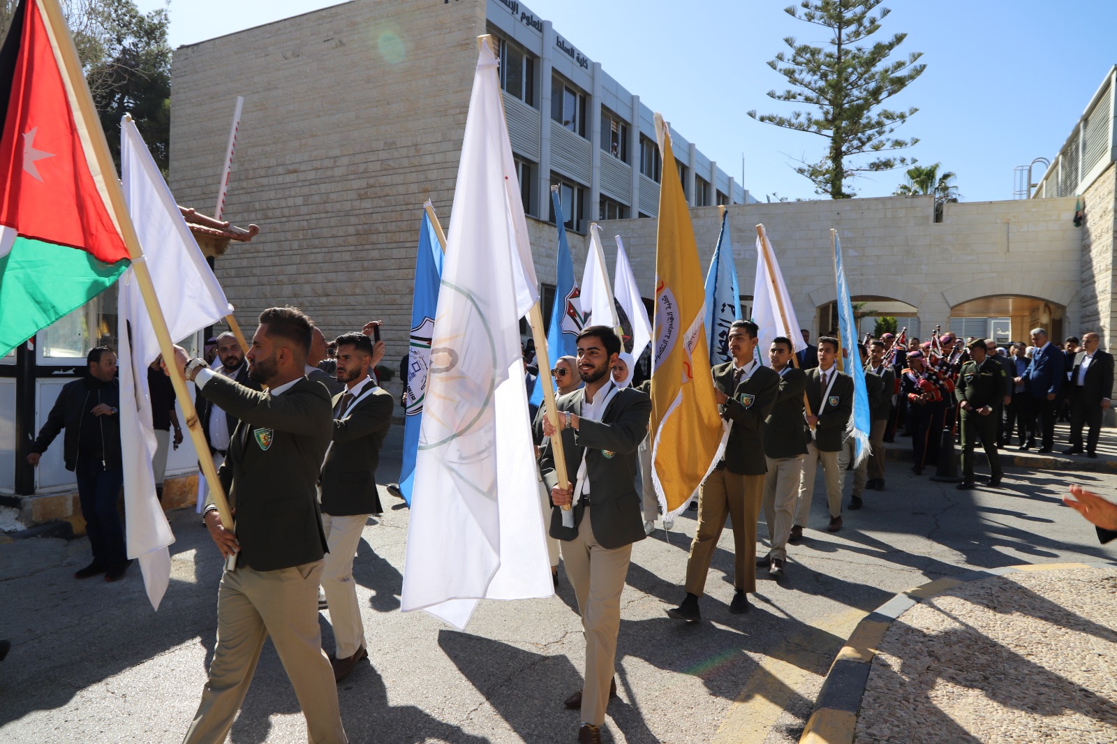 وكان قد بدأ الاحتفال بمسيرة انطلقت من أمام رئاسة الجامعة تقدمها رئيس الجامعة ونواب الرئيس وعمداء الكليات والطلبة بمرافقة موسيقات القوات المسلحة الأردنية والتي عزفت المقطوعات الموسيقية الاردنية ورفع خلالها الطلبة صور لجلالة الملك المفدى وعلم الأردن.