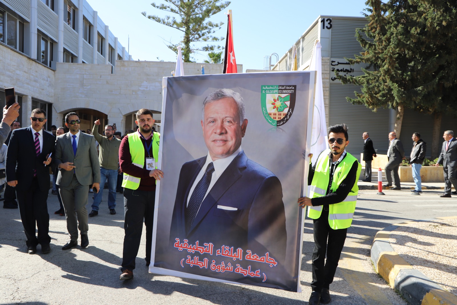 رعى رئيس جامعة البلقاء التطبيقية الأستاذ الدكتور أحمد فخري العجلوني الإحتفال بالعيد الواحد والستين لميلاد جلالة الملك عبدالله الثاني ابن الحسين المعظم والذي نظمته عمادة شؤون الطلبة وبمشاركة كافة كليات الجامعة وبحضور نواب رئيس الجامعة وعمداء الكليات والطلبة على ملعب الجامعة.