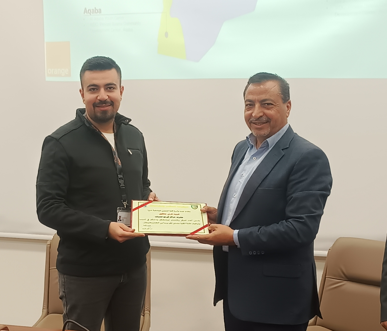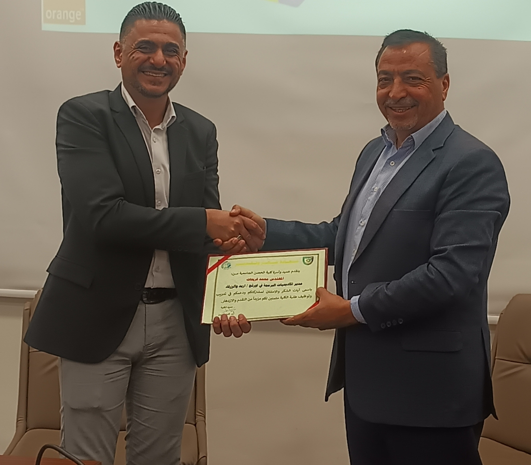 بحضور عميد كلية الحصن الجامعية الأستاذ الدكتور كامل الزبون عقدت أكاديمية أورنج للبرمجة لقاء مع الطلبة الخريجين والمتوقع تخرجهم للتعريف بالبرنامج الذي تقدمه الأكاديمية بشكل مجاني للطلبة الخريجين والمنتهي بالتوظيف ،