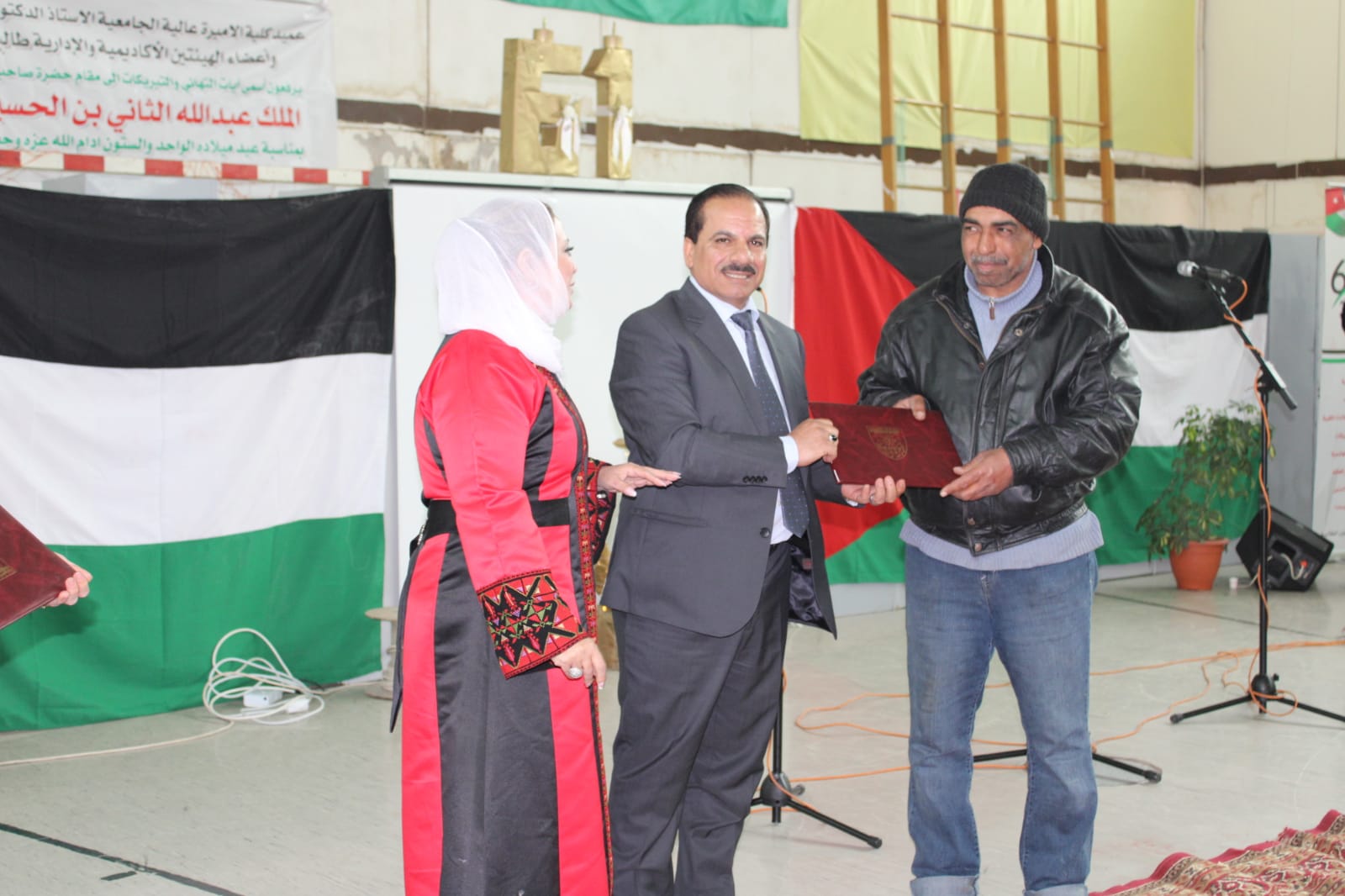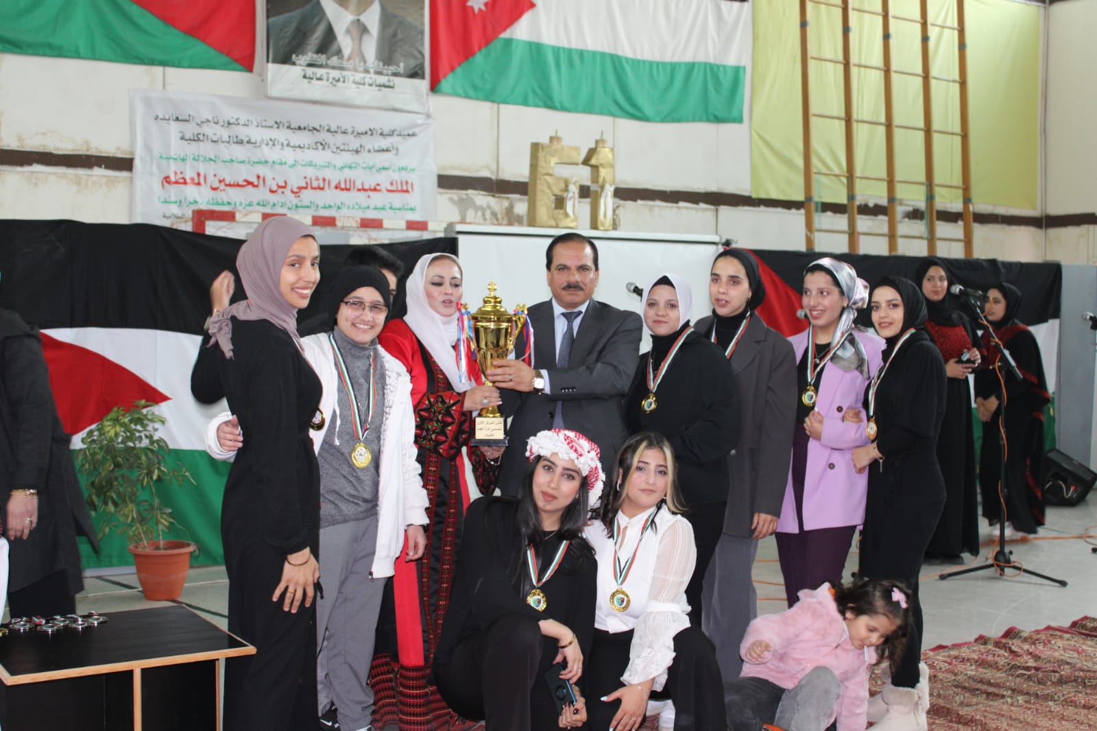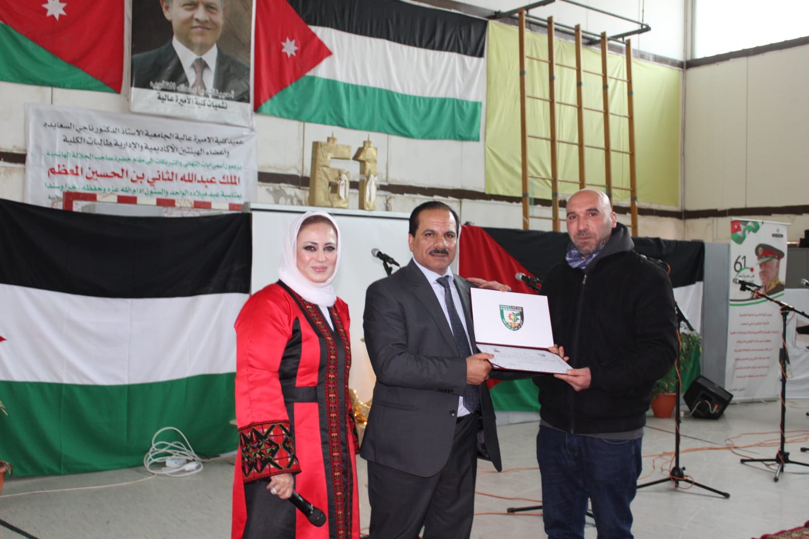 ثم عميد الكلية الاستاذ الدكتور ناجي السعايدة مبتدئًا حديثه بتوجيه الشكر للإقسام الإكاديمية والإدارية التي حملت على عاتقها الارتقاء بكلية الاميرة عالية بين الكليات وتحت مظلة شمس الجامعات جامعة البلقاء التطبيقية فكان لها بصمة مميزة باحتفالات الجامعة بعيد ميلاد جلالة الملك عبدالله الثاني بن الحسين المعظم والفوز بالمركز الاول ونيل في بطولة الاتحاد الرياضي للكليات الجامعية والجامعية المتوسطة الدورة التاسعة عشر التي اقيمت تصفياتها النهائية في مدينة العقبة وحصولهن على المركز الثاني في سباق اختراق الضاحية ( اركض نحو البلقاء)
